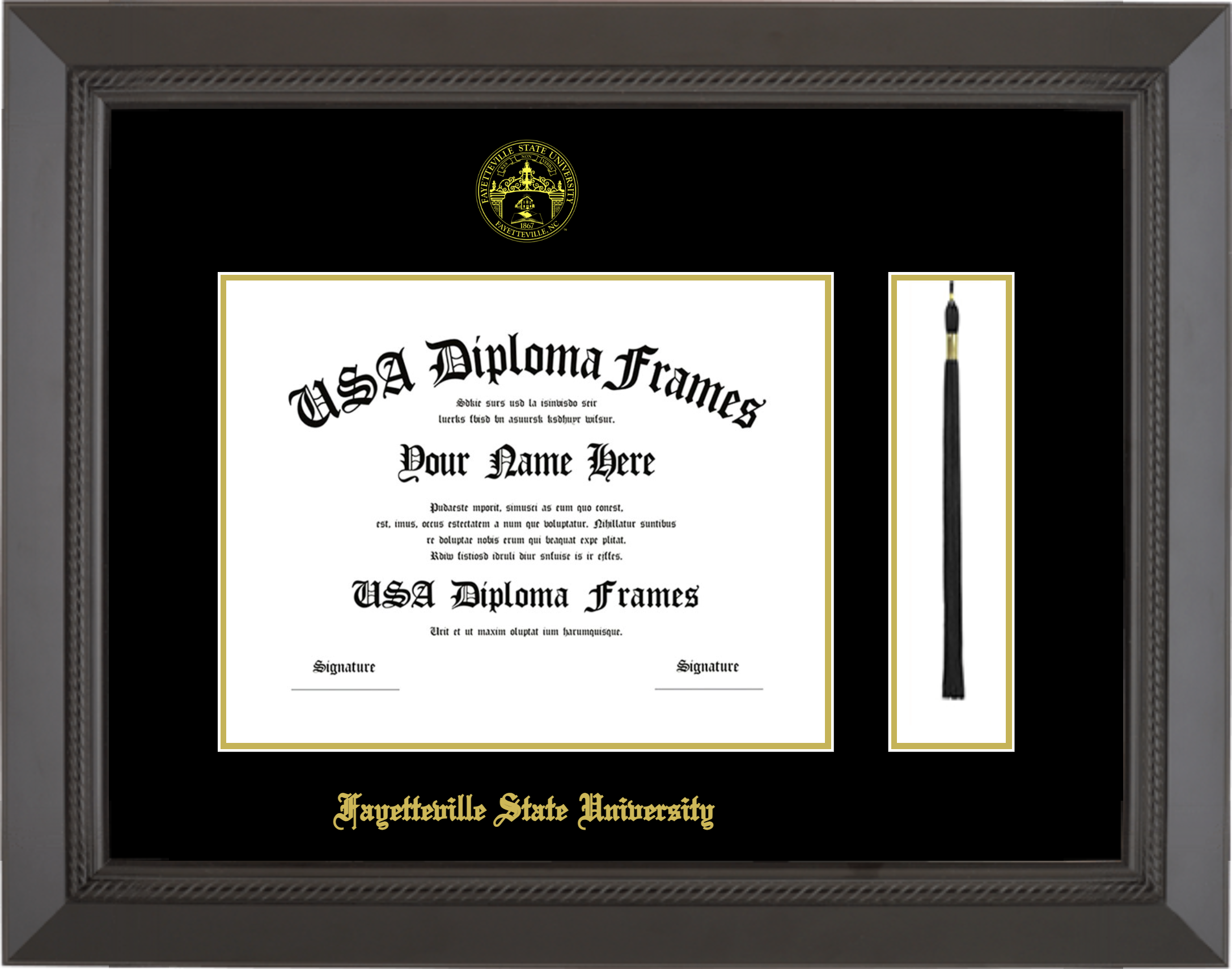 Fayetteville State University Diploma Frame with Tassel – Black Rope – Black and Gold Mat