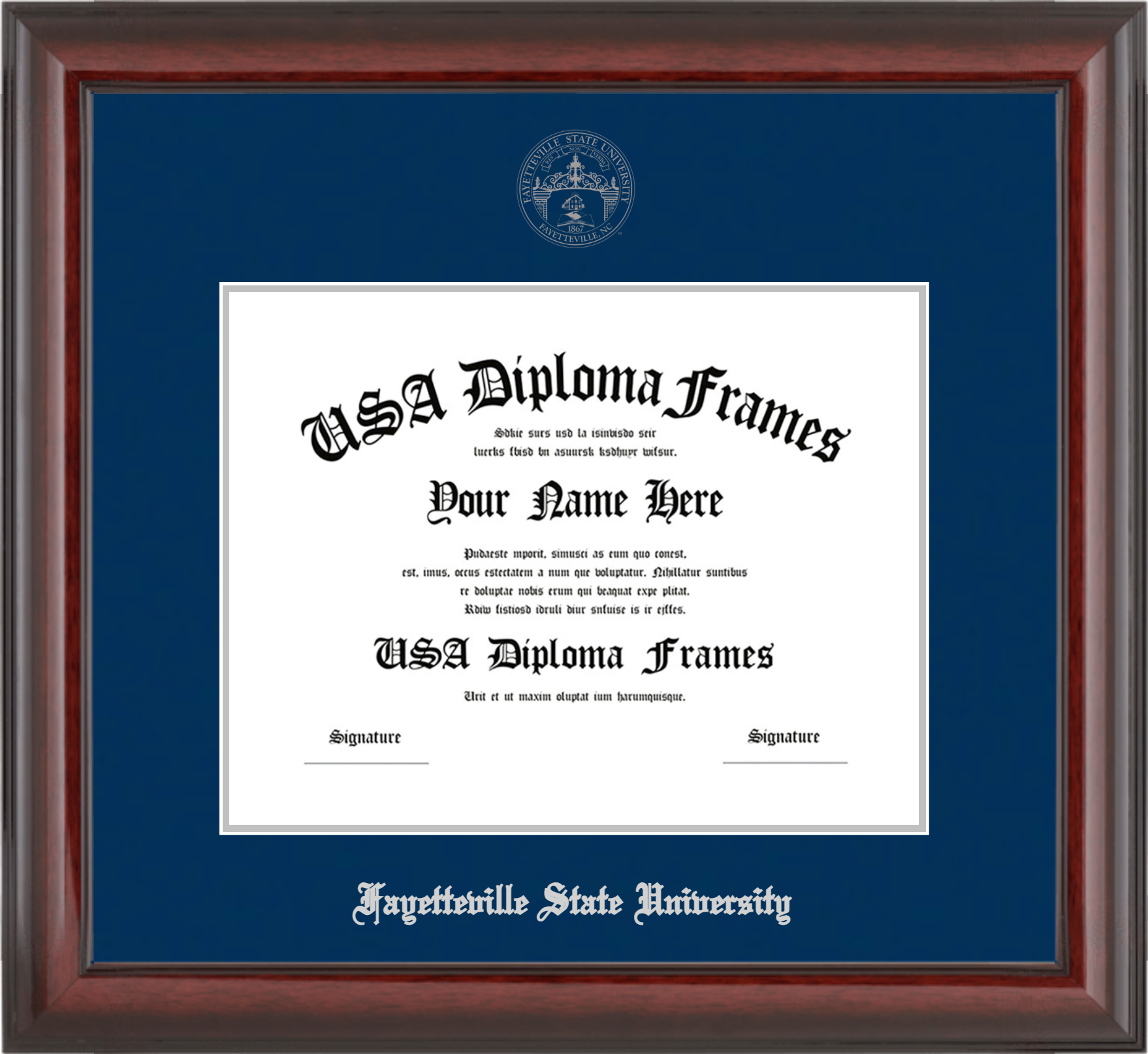 Fayetteville State University Diploma Frame – Cherry Mahogany Glossy – Navy and Silver Mat