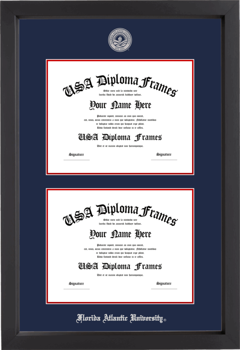 Florida Atlantic University Double Diploma Frame – Double Document – Black Matte – Navy and Red Mat