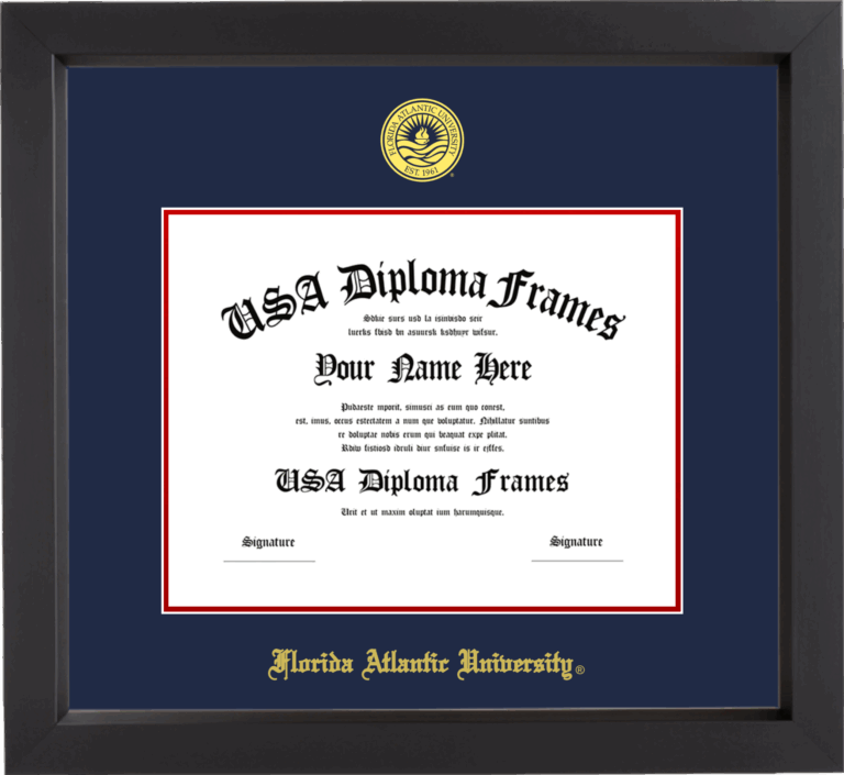 Want to explore more styles? Browse our full range of diploma frame layouts, or visit the Florida Atlantic University to view options available for your school. Looking for a fully personalized design? Try our custom Frame Builder and create a frame that’s uniquely yours.