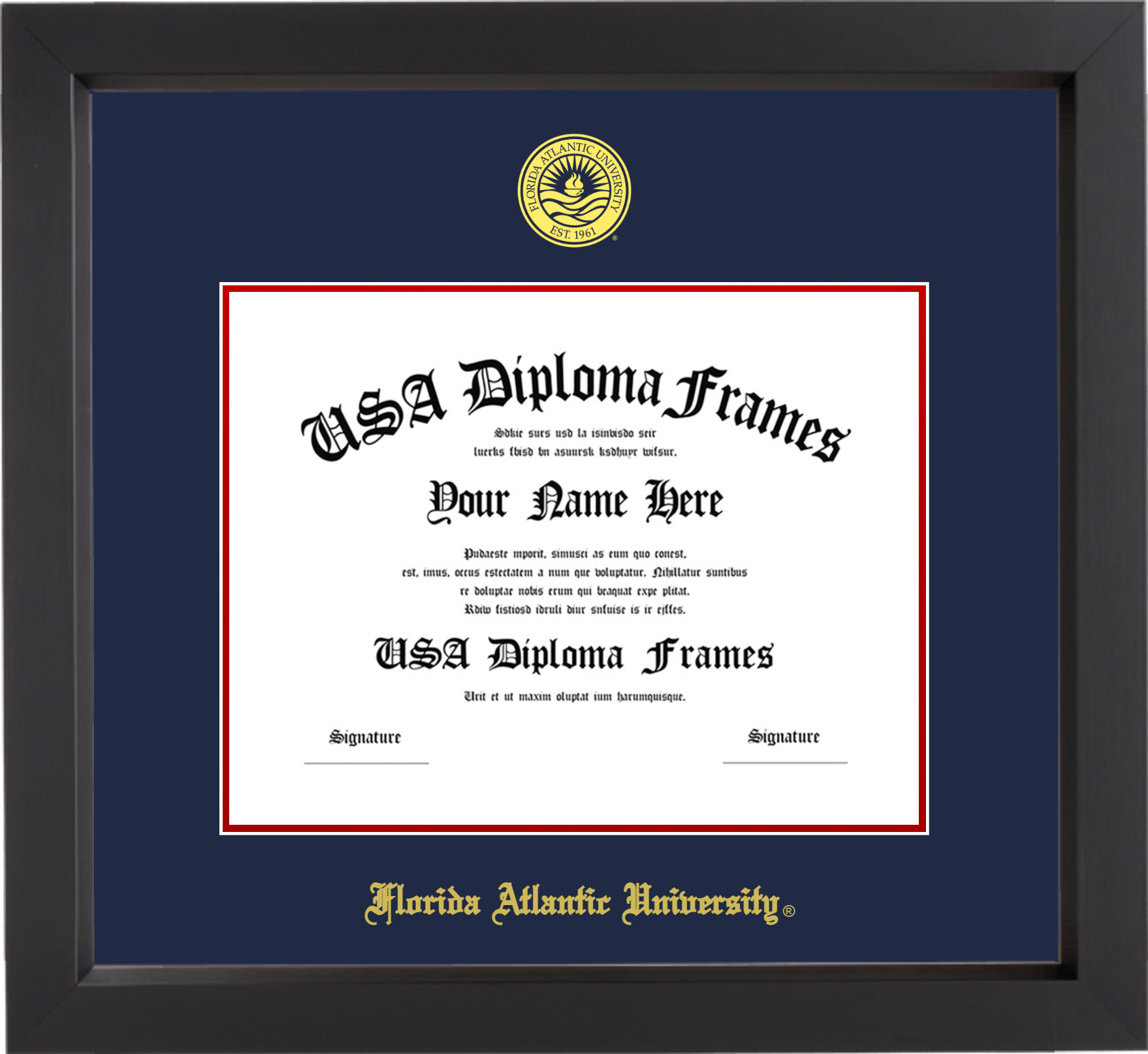 Florida Atlantic University Diploma Frame – Black Matte – Navy and Red Mat
