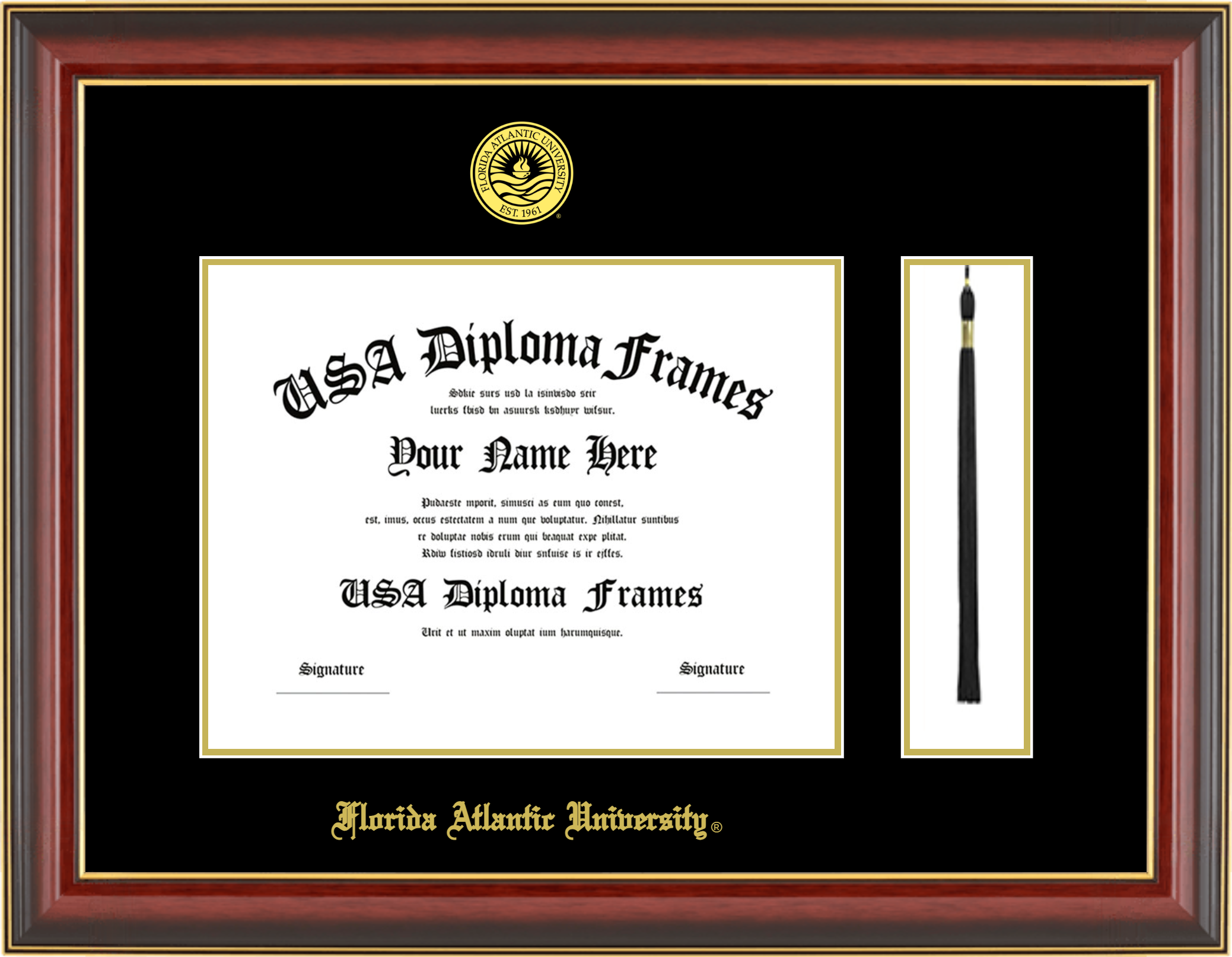 Florida Atlantic University Diploma Frame with Tassel – Cherry Mahogany Gold Trim Glossy – Black and Gold Mat