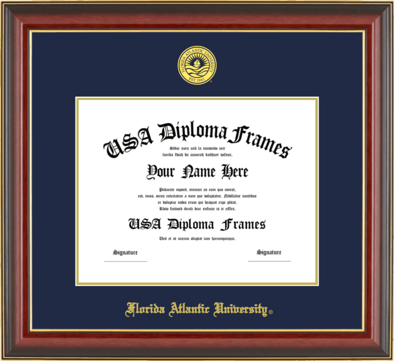 Florida Atlantic University Diploma Frame – Cherry Mahogany Gold Trim Glossy – Navy and Gold Mat