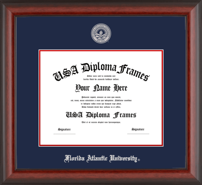 Want to explore more styles? Browse our full range of diploma frame layouts, or visit the Florida Atlantic University to view options available for your school. Looking for a fully personalized design? Try our custom Frame Builder and create a frame that’s uniquely yours.