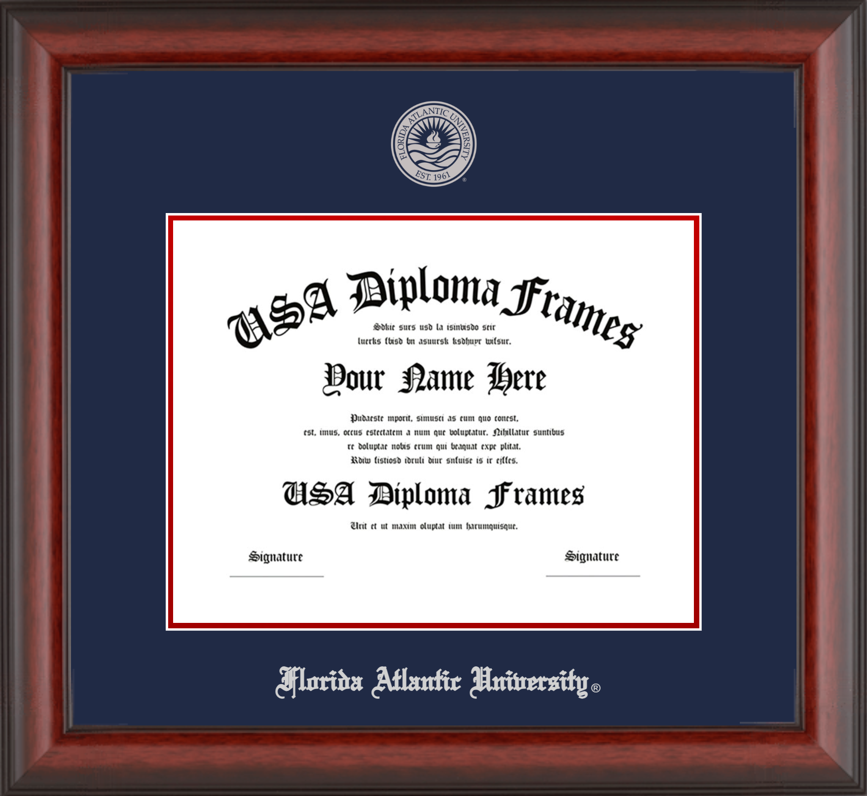 Florida Atlantic University Diploma Frame – Cherry Mahogany Matte – Navy and Red Mat – Silver Seal
