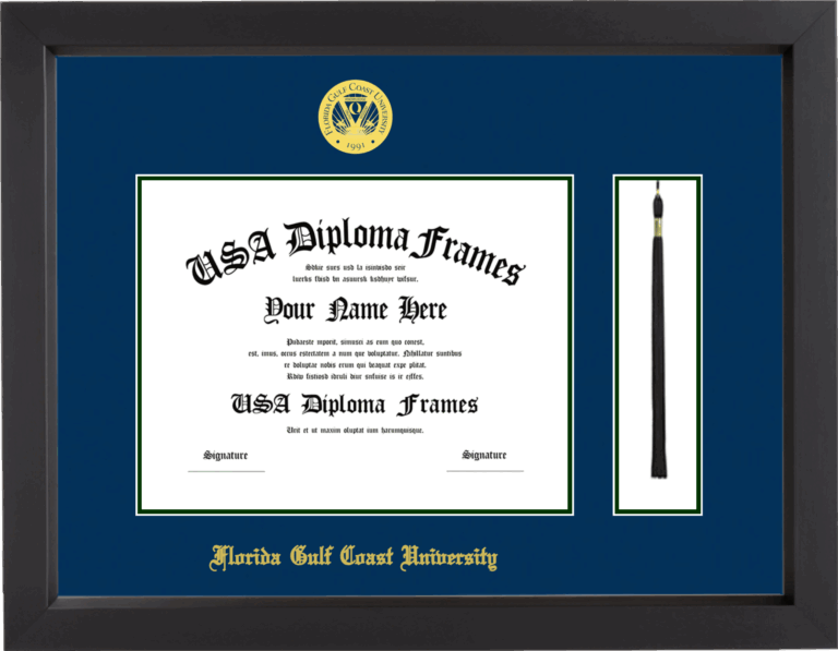 Want to explore more styles? Browse our full range of diploma frame layouts, or visit the Florida Gulf Coast University to view options available for your school. Looking for a fully personalized design? Try our custom Frame Builder and create a frame that’s uniquely yours.