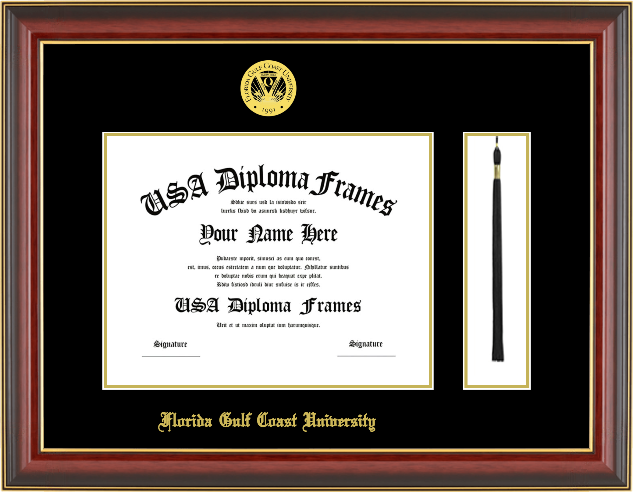 Florida Gulf Coast University Diploma Frame with Tassel – Cherry Mahogany Gold Trim Glossy – Black and Gold Mat