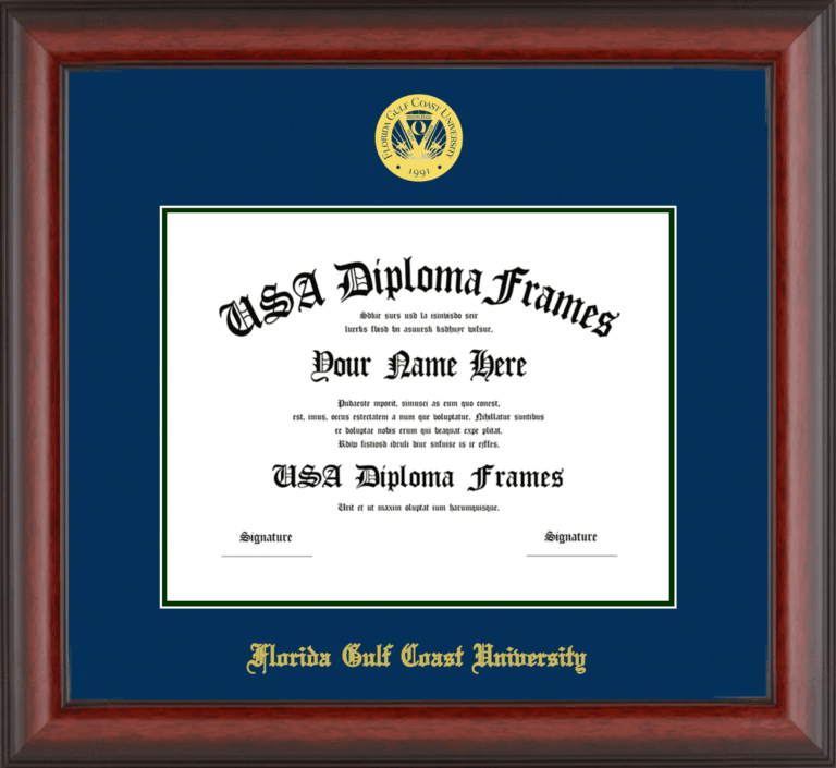 Want to explore more styles? Browse our full range of diploma frame layouts, or visit the Florida Gulf Coast University to view options available for your school. Looking for a fully personalized design? Try our custom Frame Builder and create a frame that’s uniquely yours.