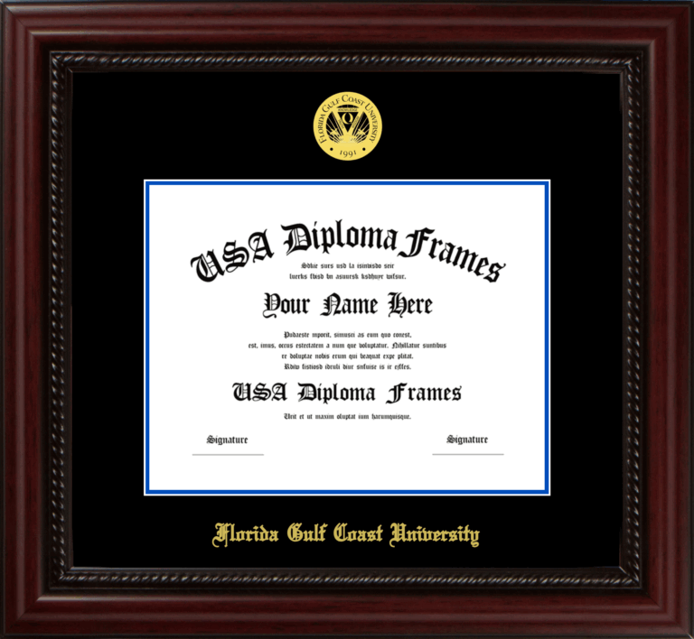 Want to explore more styles? Browse our full range of diploma frame layouts, or visit the Florida Gulf Coast University to view options available for your school. Looking for a fully personalized design? Try our custom Frame Builder and create a frame that’s uniquely yours.