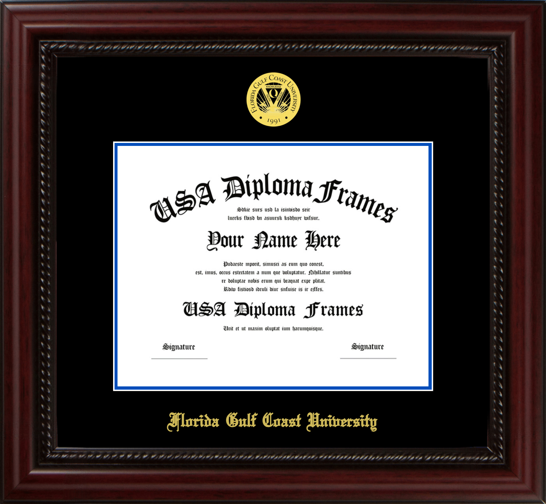 Florida Gulf Coast University Diploma Frame – Executive Cherry Rope – Black and Royal Blue Mat
