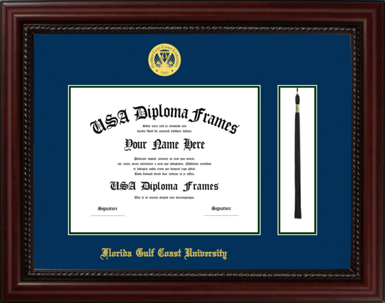 Want to explore more styles? Browse our full range of diploma frame layouts, or visit the Florida Gulf Coast University to view options available for your school. Looking for a fully personalized design? Try our custom Frame Builder and create a frame that’s uniquely yours.