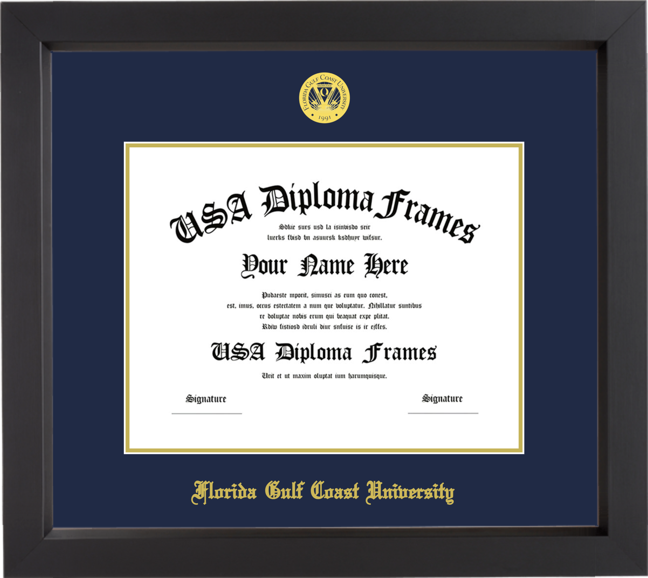 Florida Gulf Coast University – Single Horizontal Document ( Bachelors ) – Black Matte – Navy Mat – Gold Accent Mat – With Seal(University Seal Gold) – With Gold Embossing (Florida Gulf Coast University)