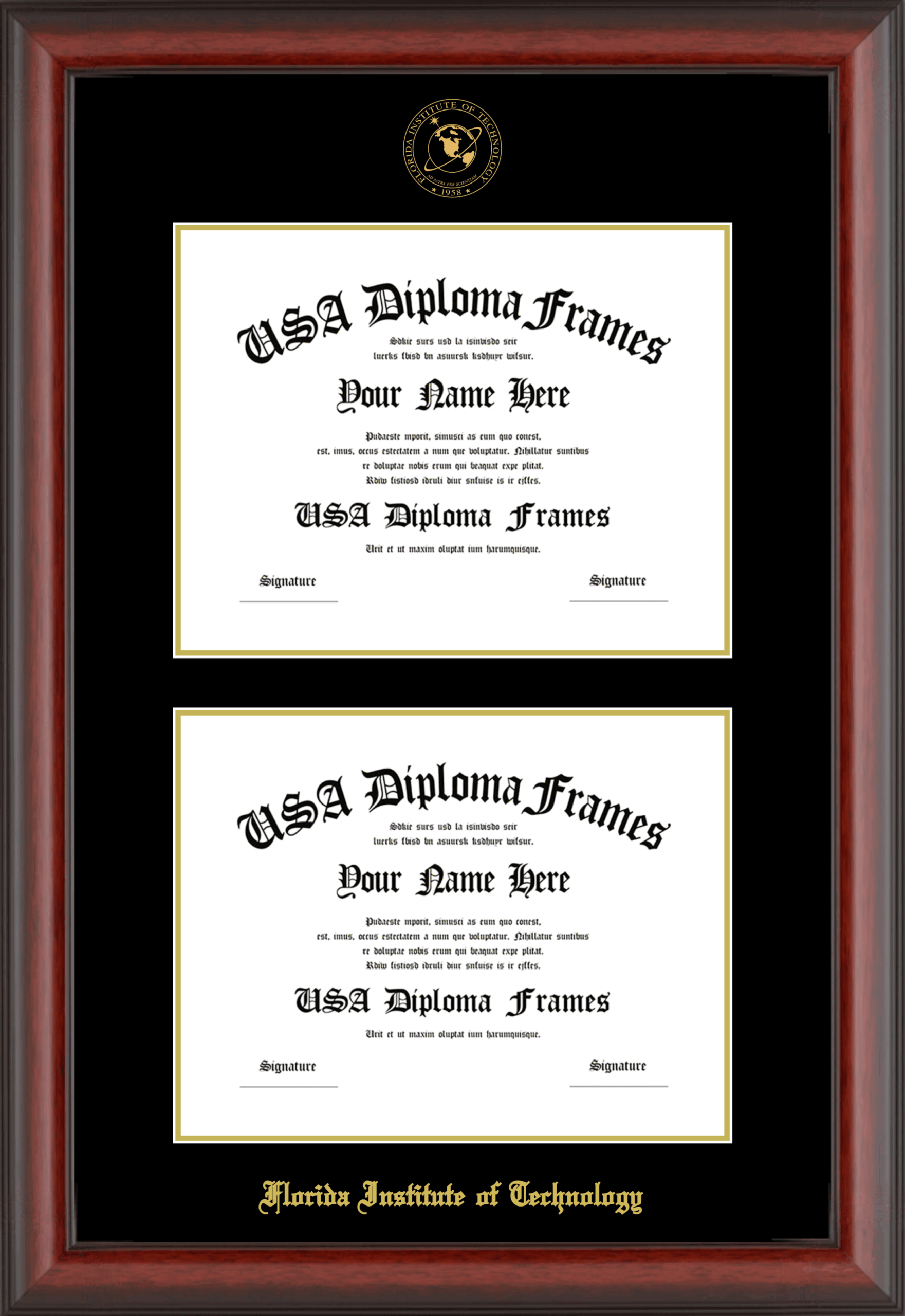 Florida Institute of Technology Double Diploma Frame – Double Document – Florida Tech – Cherry Mahogany Matte – Black and Gold Mat