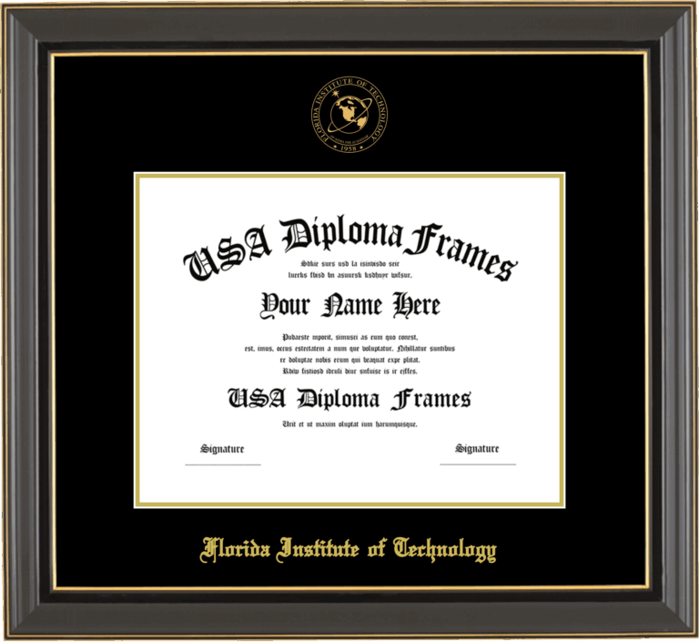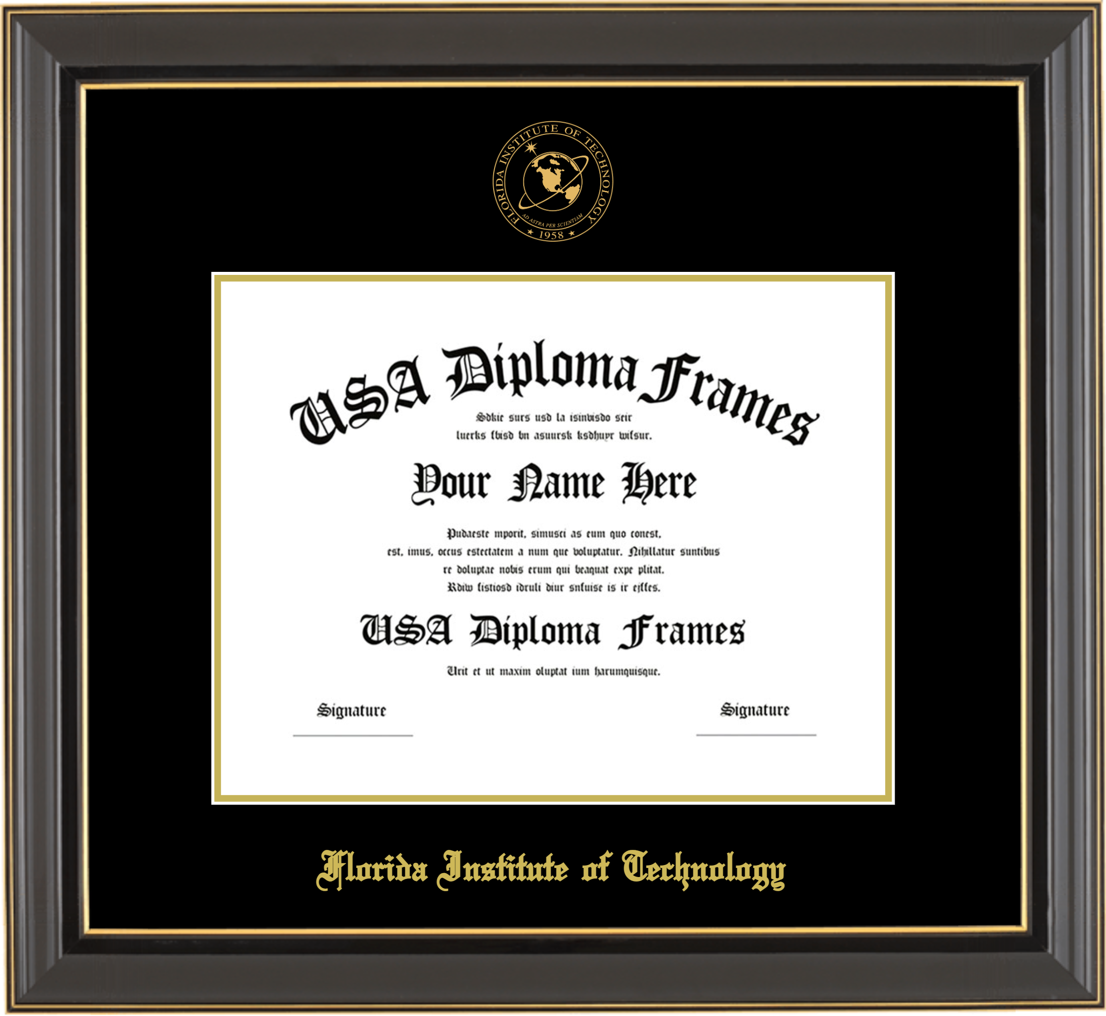 Florida Institute of Technology Diploma Frame- Florida Tech Diploma Frame – Black Gold Trim Glossy – Black and Gold Mat