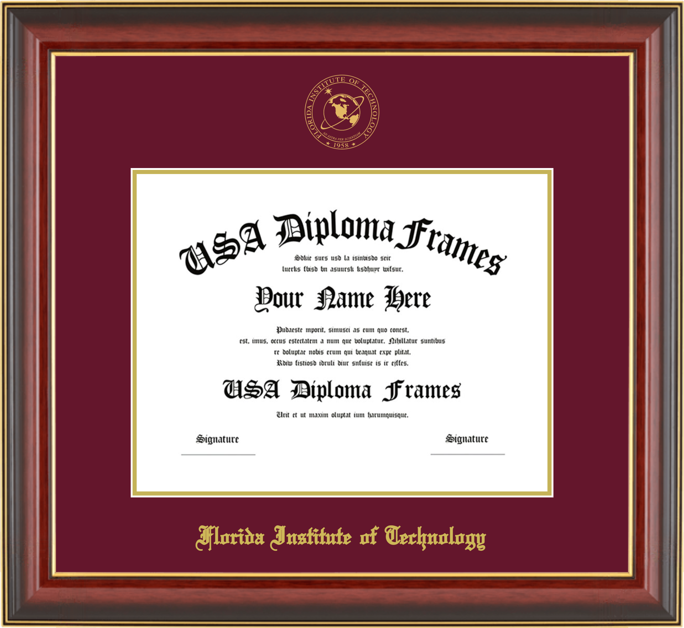 Want to explore more styles? Browse our full range of diploma frame layouts, or visit the Florida Institute of Technology to view options available for your school. Looking for a fully personalized design? Try our custom Frame Builder and create a frame that’s uniquely yours.