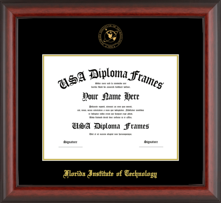 Florida Institute of Technology Diploma Frame – Florida Tech – Cherry Mahogany Matte – Black and Gold Mat
