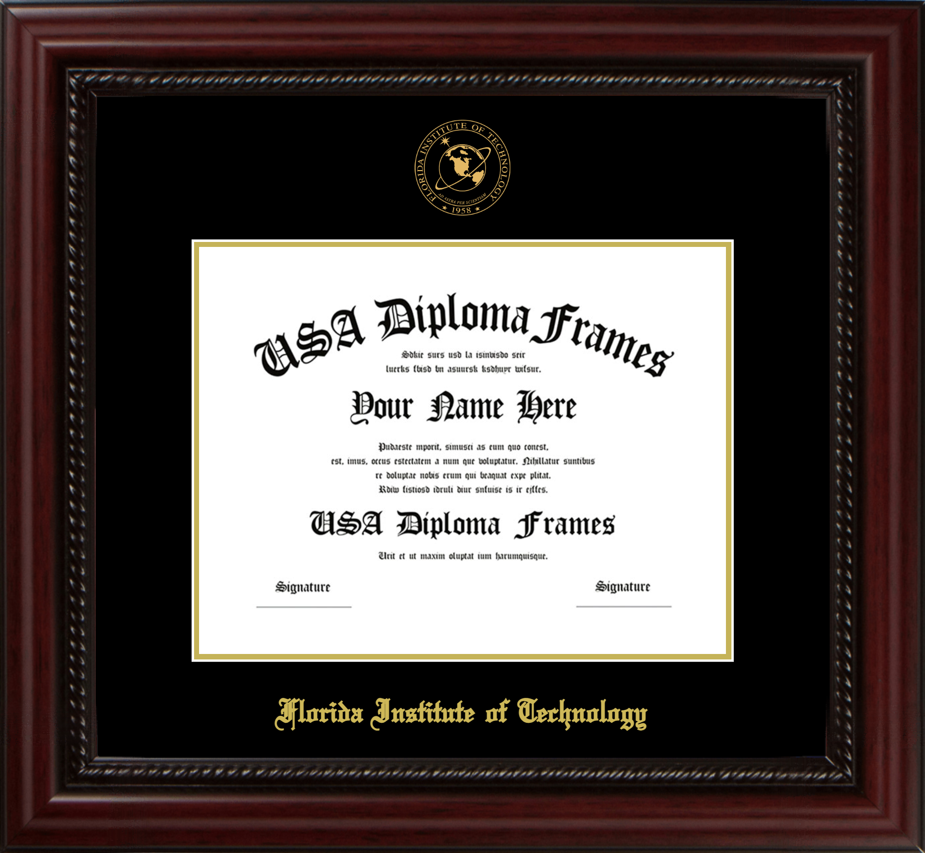 Florida Institute of Technology Diploma Frame – Florida Tech – Executive Cherry Rope – Black and Gold Mat