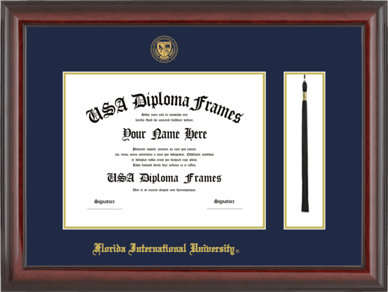 Want to explore more styles? Browse our full range of diploma frame layouts, or visit the Florida International University to view options available for your school. Looking for a fully personalized design? Try our custom Frame Builder and create a frame that’s uniquely yours.