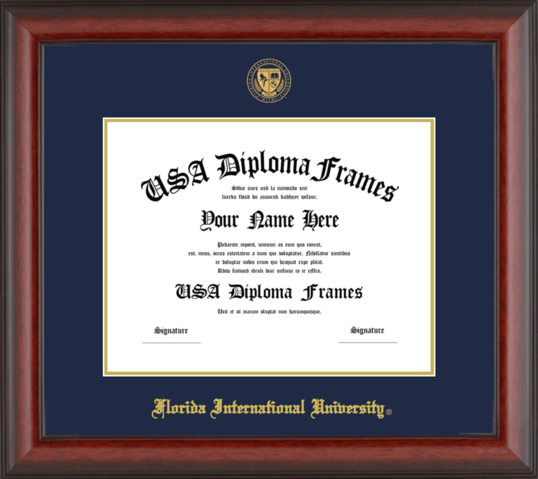 Want to explore more styles? Browse our full range of diploma frame layouts, or visit the Florida International University to view options available for your school. Looking for a fully personalized design? Try our custom Frame Builder and create a frame that’s uniquely yours.