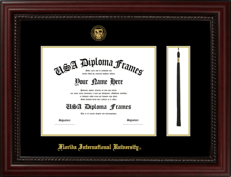 Want to explore more styles? Browse our full range of diploma frame layouts, or visit the Florida International University to view options available for your school. Looking for a fully personalized design? Try our custom Frame Builder and create a frame that’s uniquely yours.