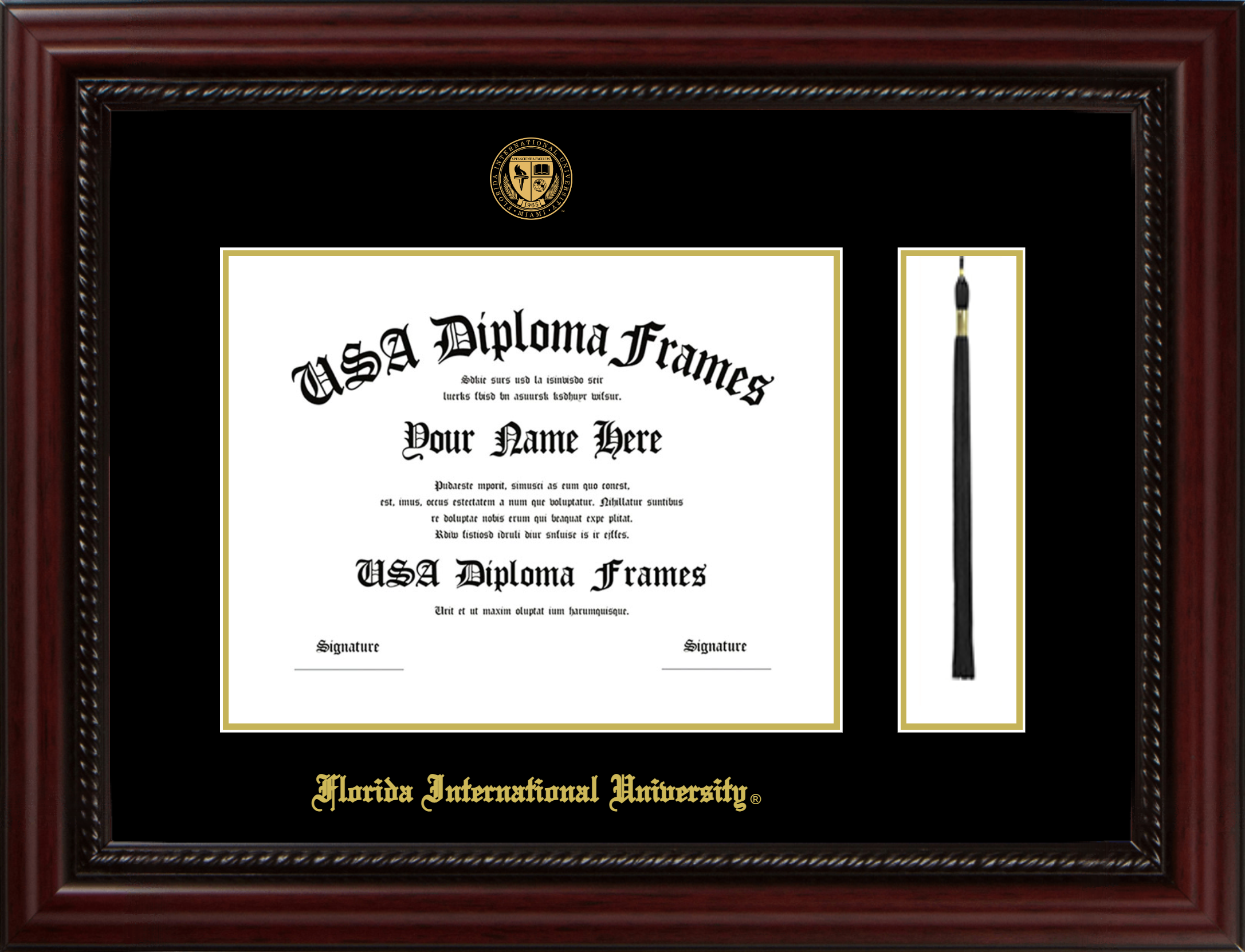 Florida International University – Single Horizontal Document ( Bachelors ) – Executive Cherry Rope – Black Mat – Gold Accent Mat – With Tassel(Default) – With Seal(University Seal Gold) – With Gold Embossing (Florida International University)