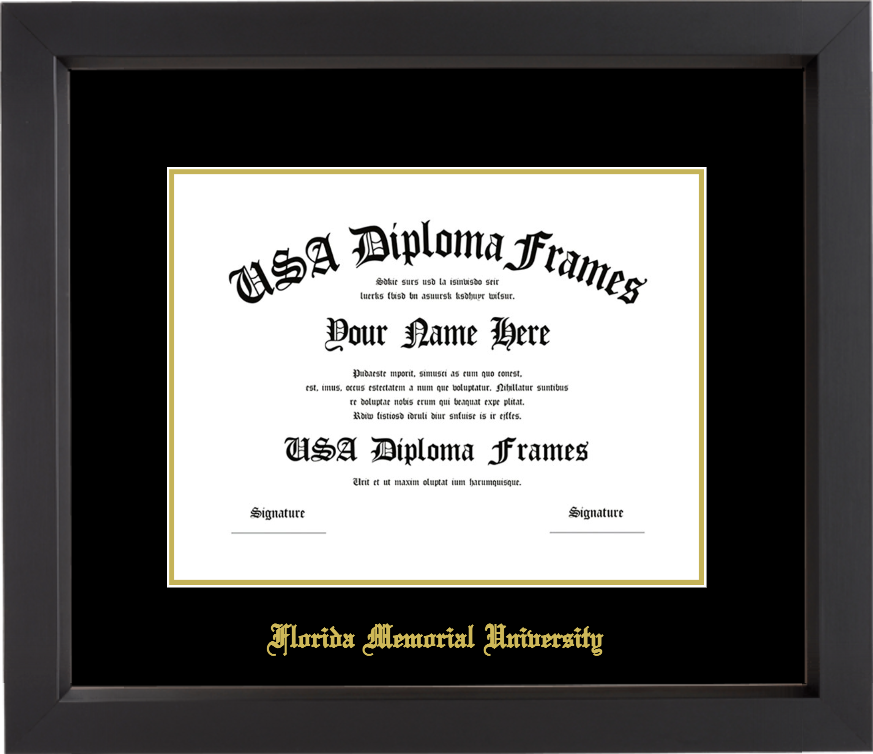 Florida Memorial University Diploma Frame – Black Matte – Black and Gold Mat