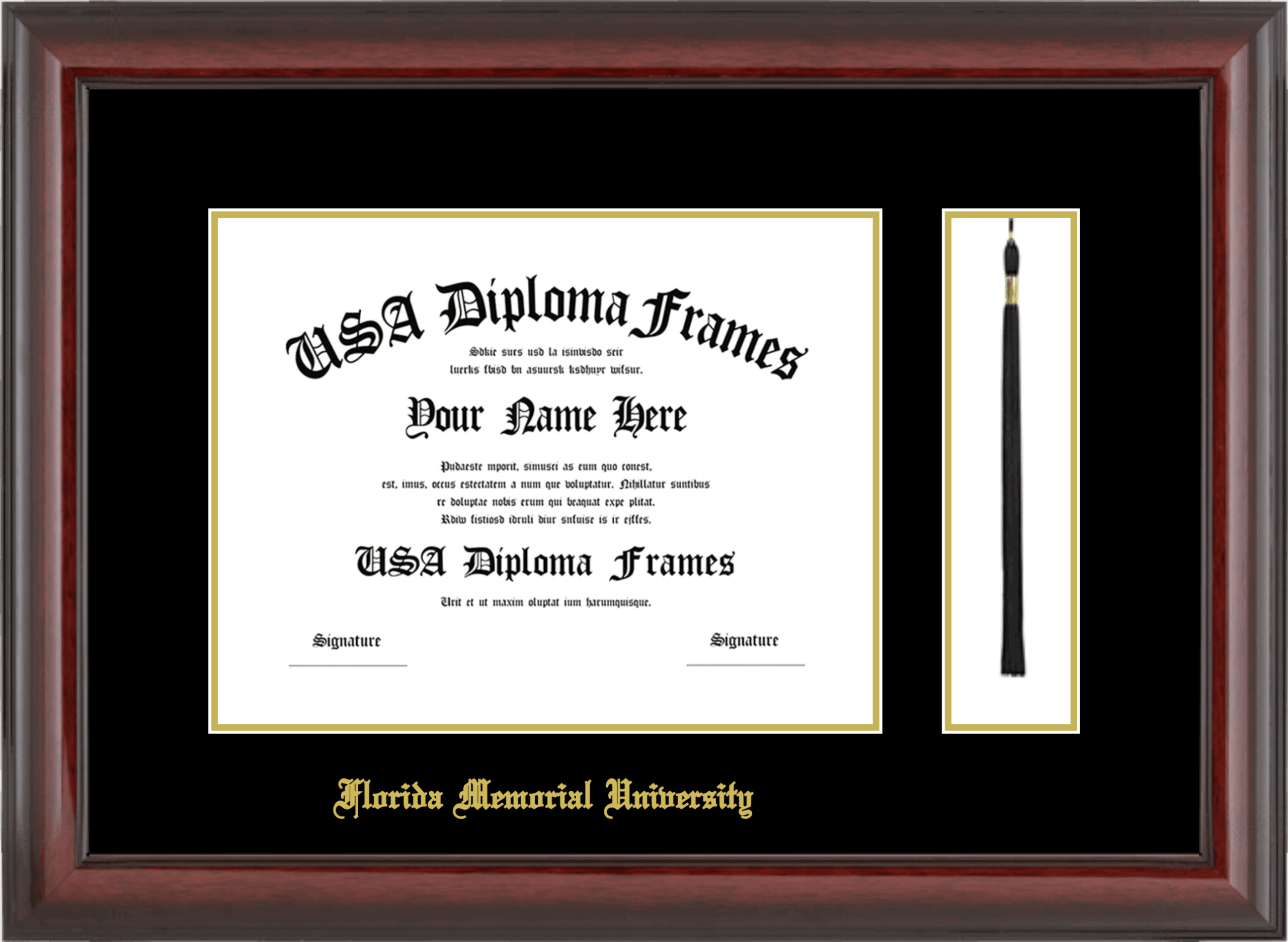 Florida Memorial University – Single Horizontal Document ( 8 1/2″x11″ ) – Cherry Mahogany Glossy – Black Mat – Gold Accent Mat – With Tassel(Default) – With Gold Embossing (Florida Memorial University)