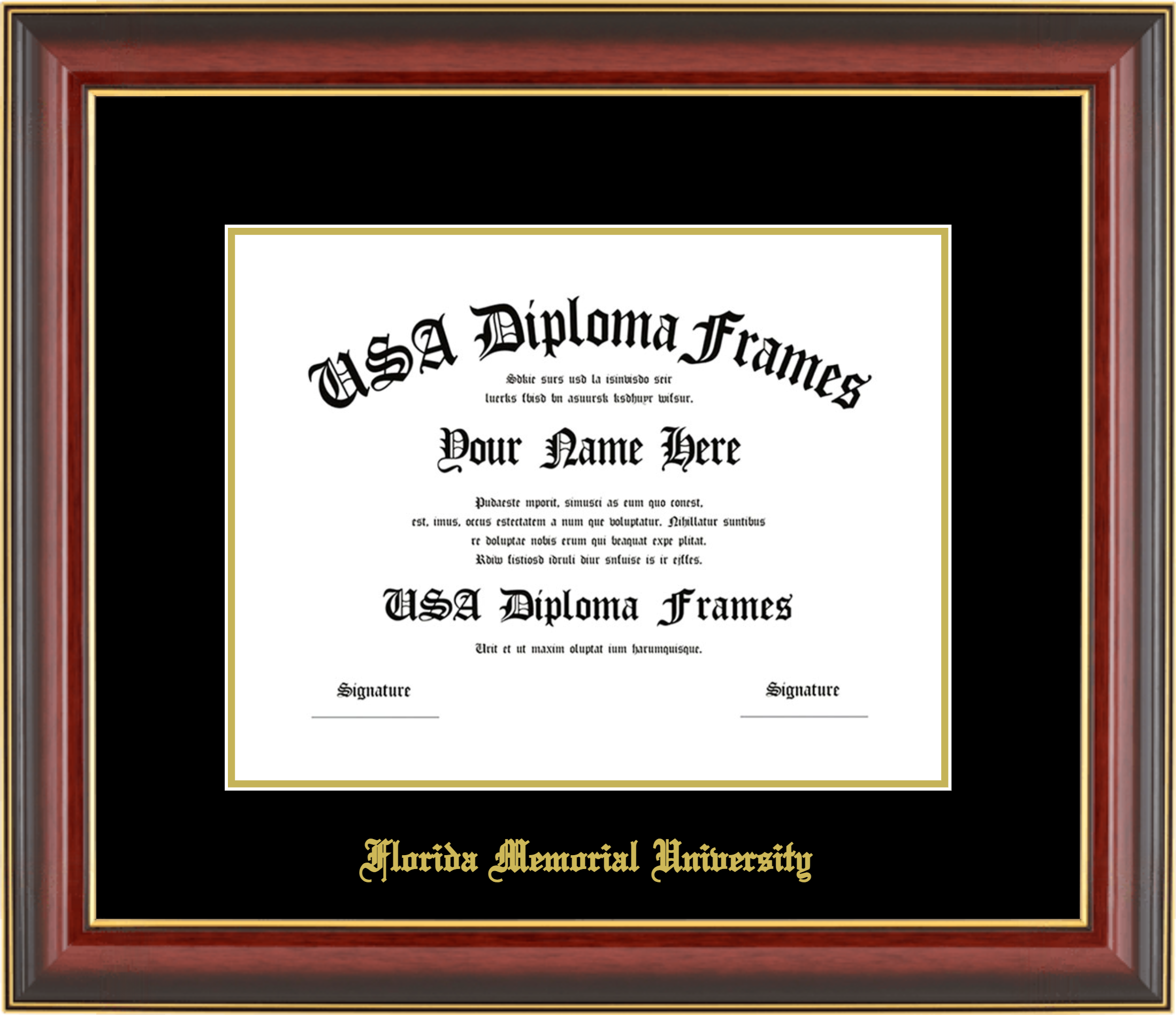 Florida Memorial University – Single Horizontal Document ( 8 1/2″x11″ ) – Cherry Mahogany Gold Trim Glossy – Black Mat – Gold Accent Mat – With Gold Embossing (Florida Memorial University)