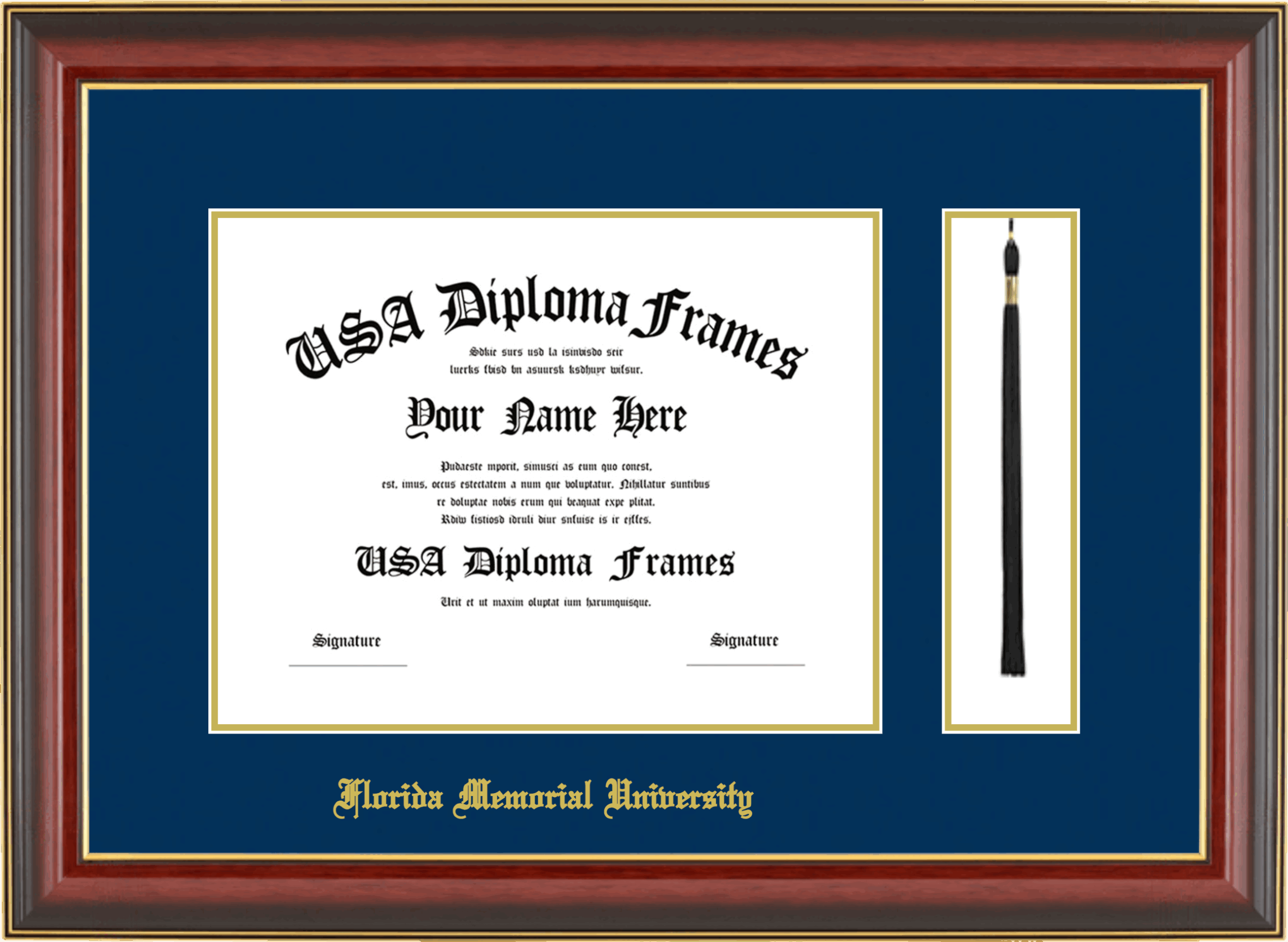 Florida Memorial University – Single Horizontal Document ( 8 1/2″x11″ ) – Cherry Mahogany Gold Trim Glossy – Navy Mat – Gold Accent Mat – With Tassel(Default) – With Gold Embossing (Florida Memorial University)