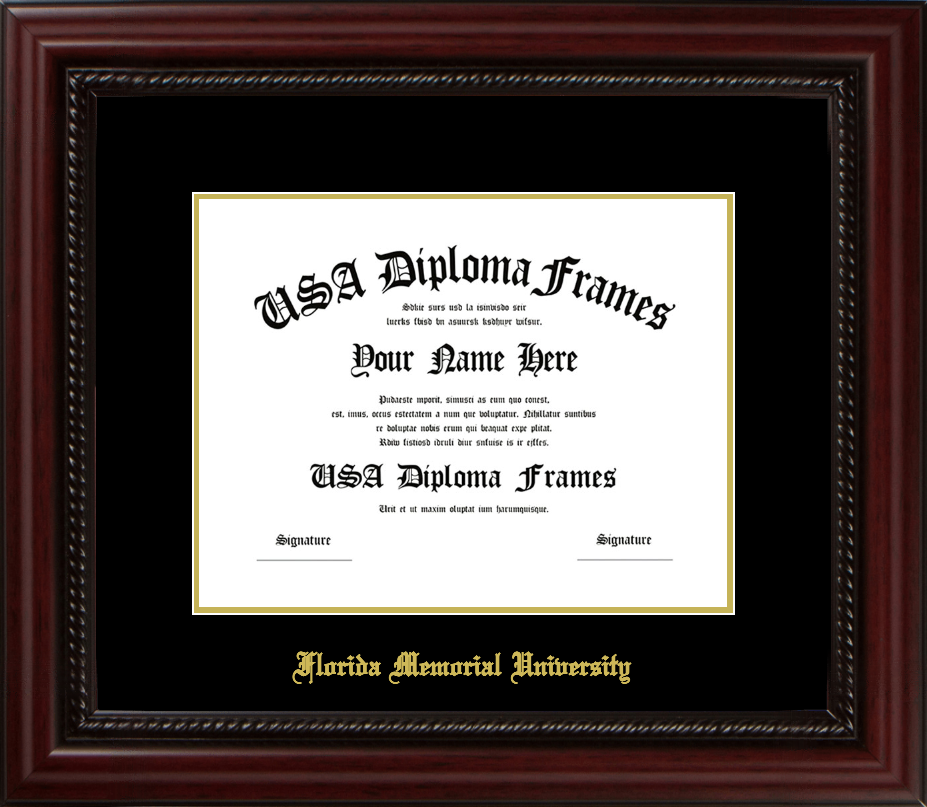 Florida Memorial University Diploma Frame – Executive Cherry Rope – Black and Gold Mat