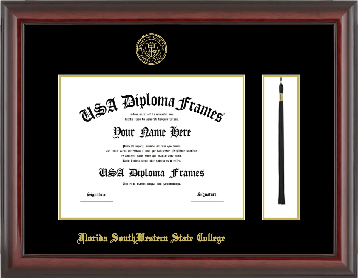 Florida SouthWestern State College Diploma Frame with Tassel – Cherry Mahogany Glossy – Black and Gold Mat