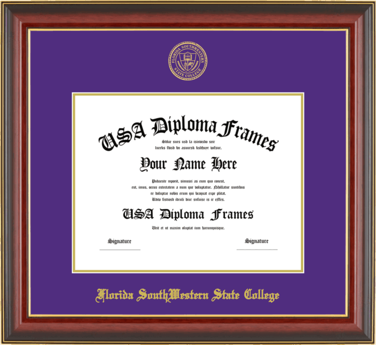 Want to explore more styles? Browse our full range of diploma frame layouts, or visit the Florida SouthWestern State College to view options available for your school. Looking for a fully personalized design? Try our custom Frame Builder and create a frame that’s uniquely yours.