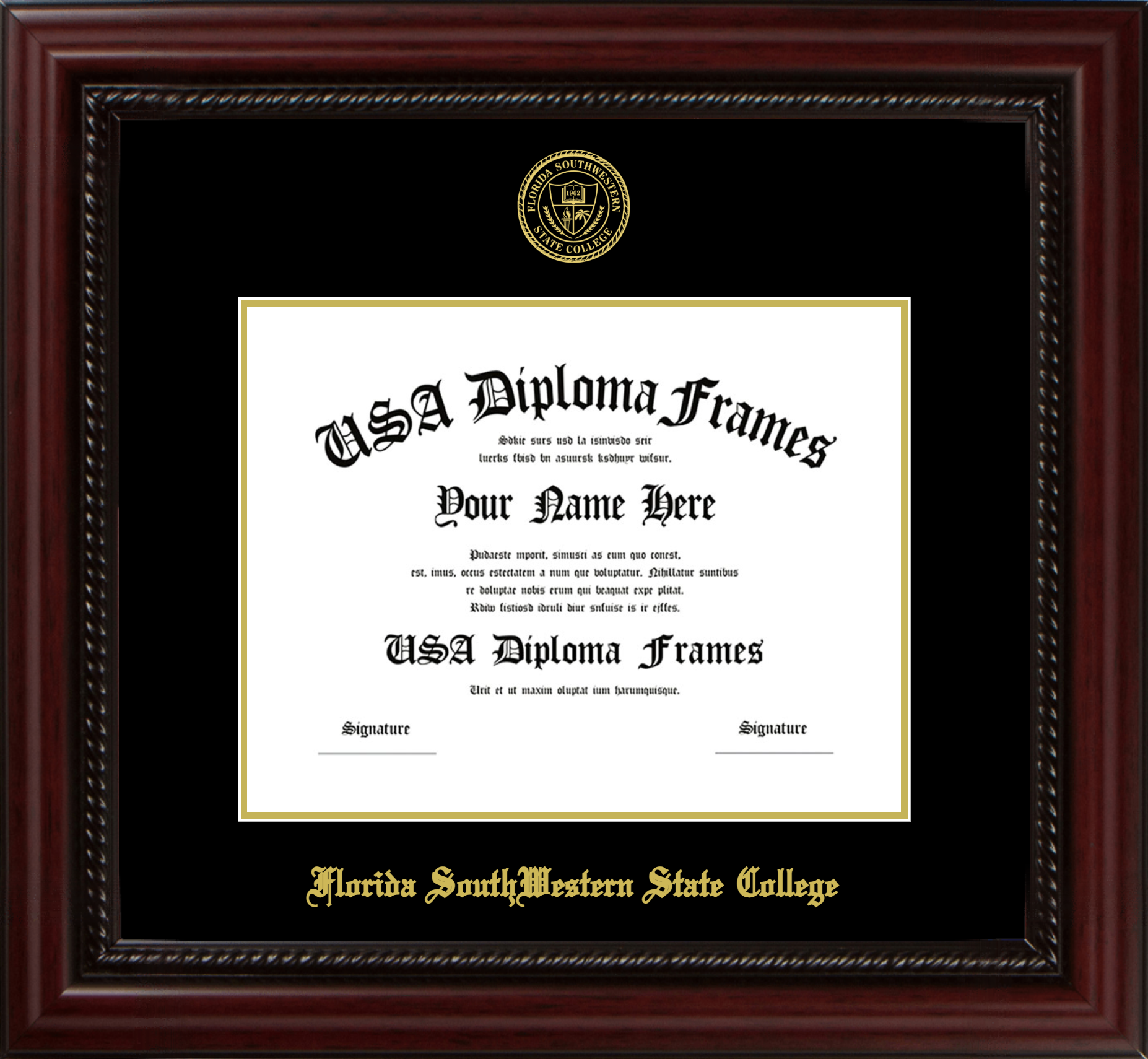Florida SouthWestern State College Diploma Frame – Executive Cherry Rope – Black and Gold Mat