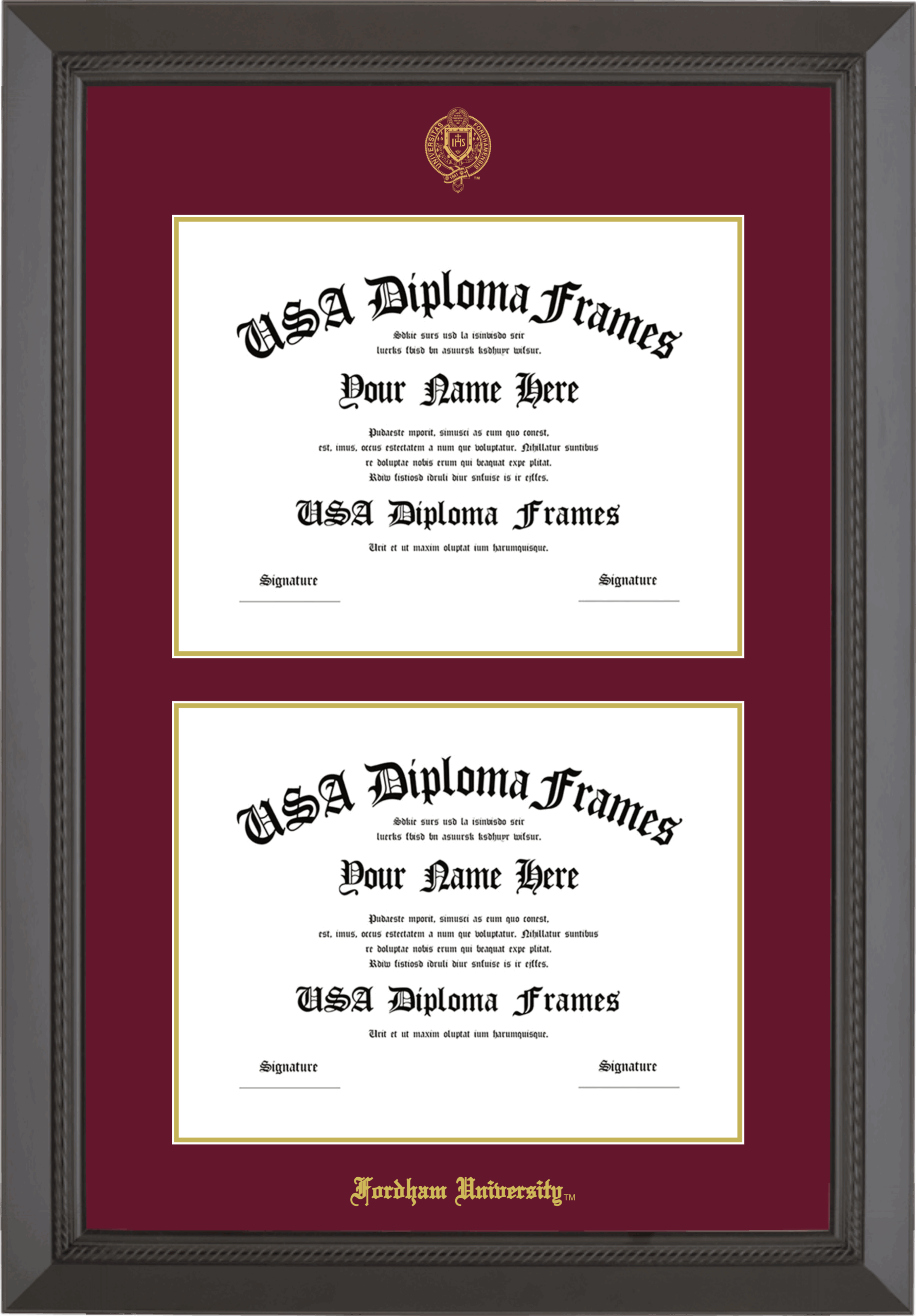Fordham University Double Diploma Frame – Double Document – Black Rope – Maroon and Gold Mat