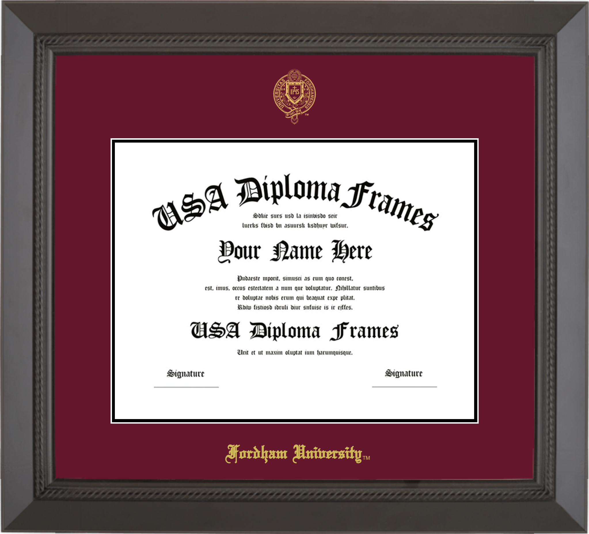 Fordham University Diploma Frame – Black Rope – Maroon and Black Mat