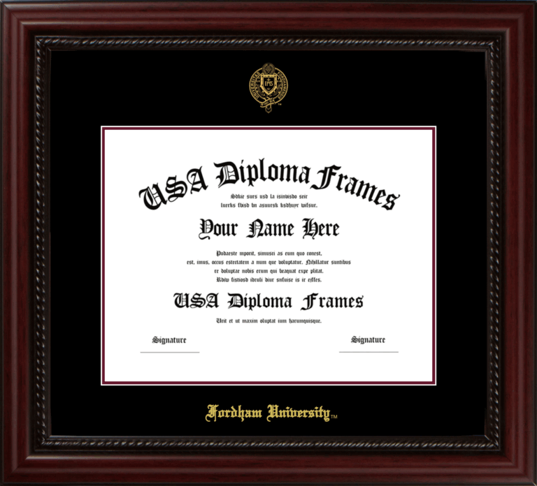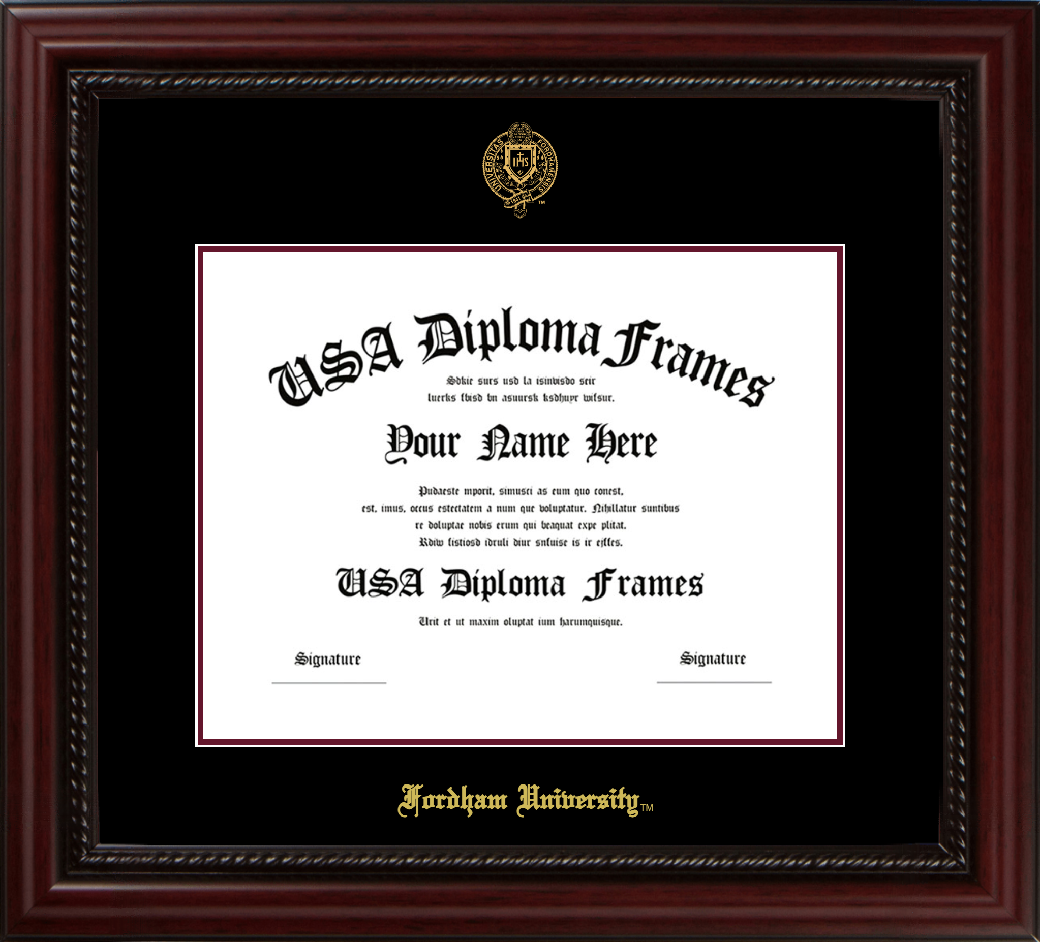 Fordham University Diploma Frame – Executive Cherry Rope – Black and Maroon Mat