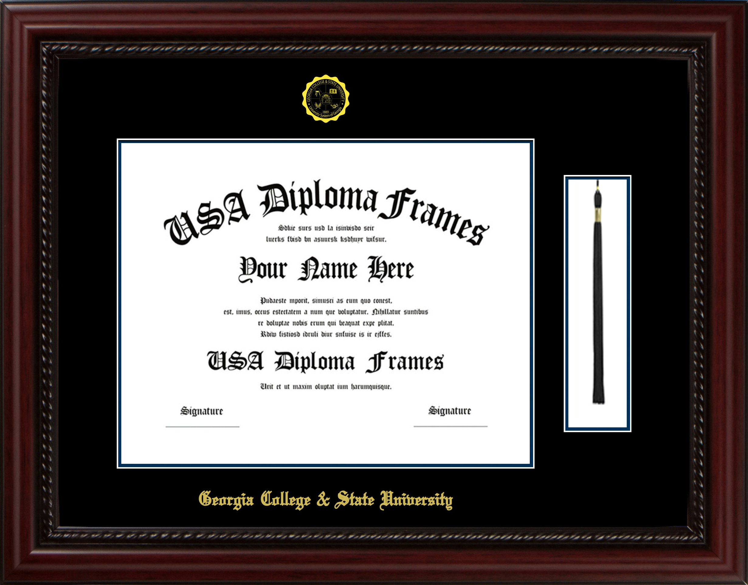 Georgia College & State University Diploma Frame with Tassel – Executive Cherry Rope – Black and Navy Mat