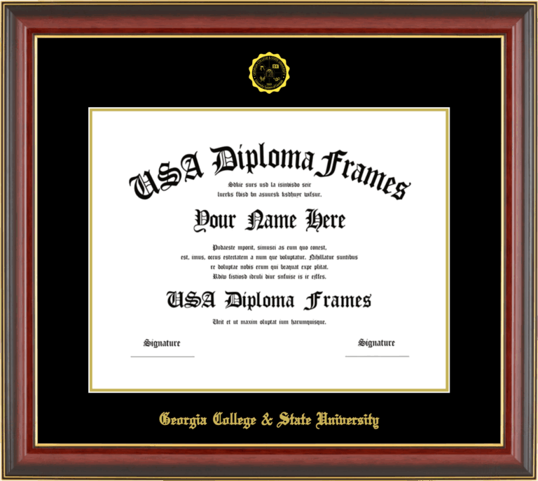 Georgia College & State University Diploma Frame – Cherry Mahogany Gold Trim Glossy – Black and Gold Mat