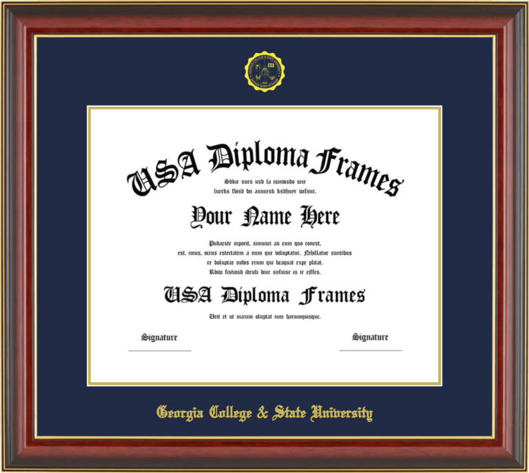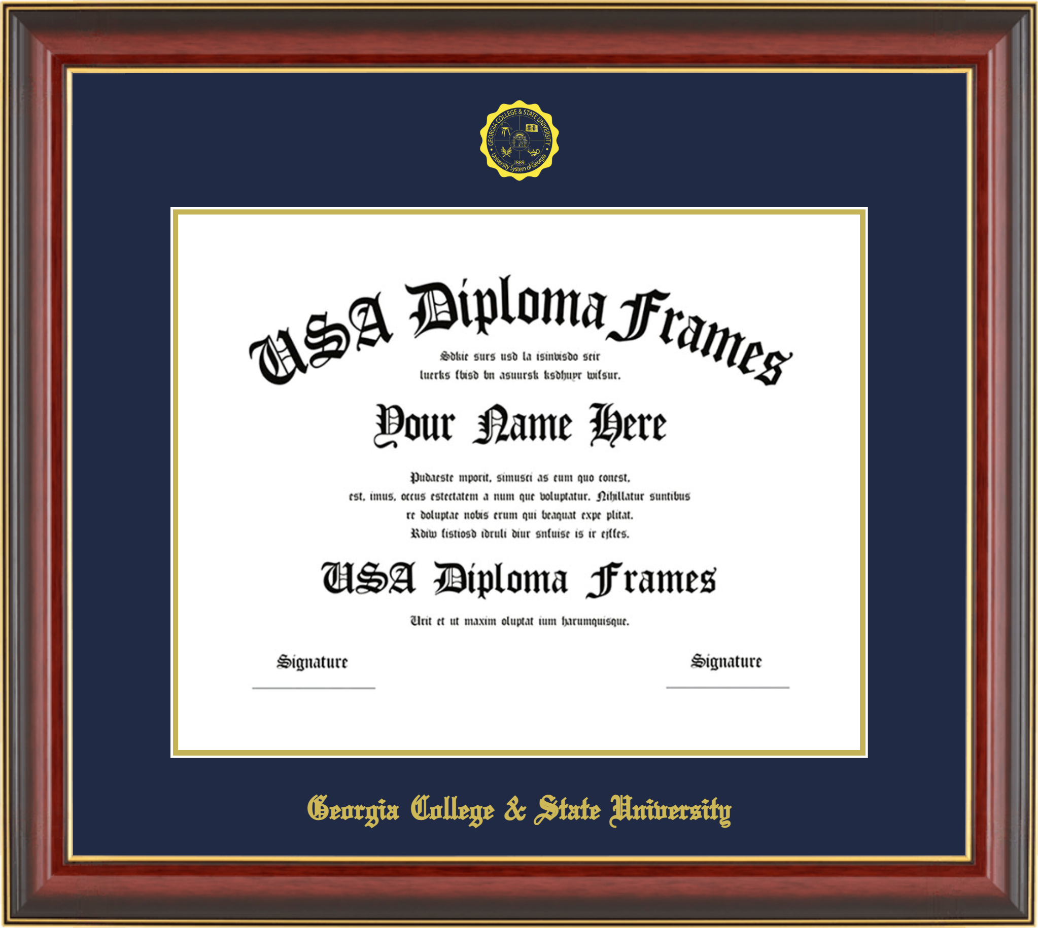 Georgia College & State University – Single Horizontal Document ( Diploma ) – Cherry Mahogany Gold Trim Glossy – Navy Mat – Gold Accent Mat – With Seal(University Seal Gold) – With Gold Embossing (Georgia College & State University)