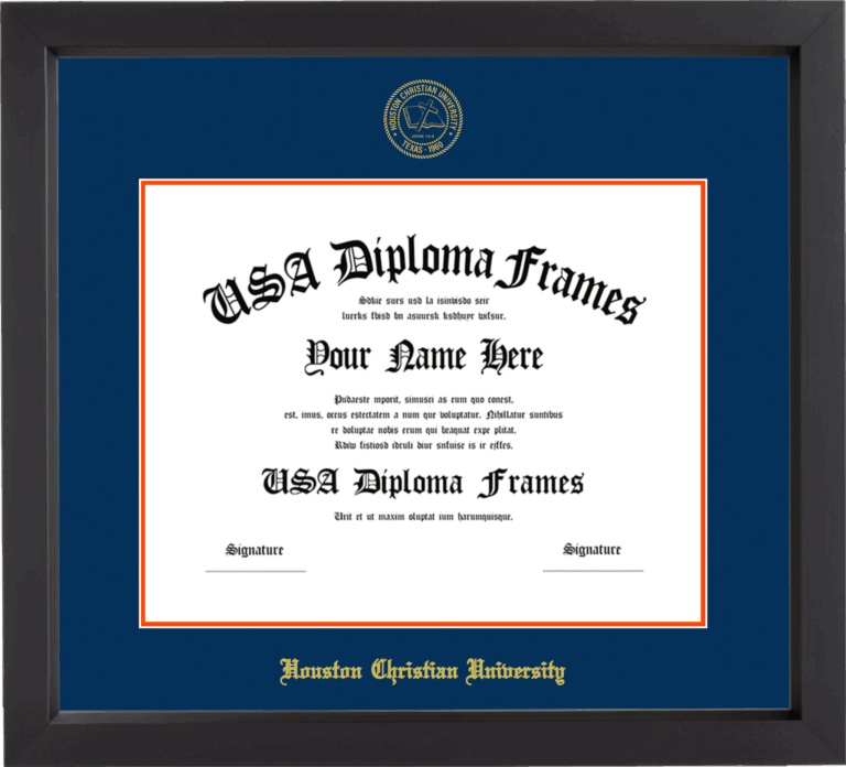 Want to explore more styles? Browse our full range of diploma frame layouts, or visit the Houston Christian University to view options available for your school. Looking for a fully personalized design? Try our custom Frame Builder and create a frame that’s uniquely yours.
