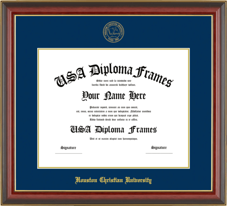 Want to explore more styles? Browse our full range of diploma frame layouts, or visit the Houston Christian University to view options available for your school. Looking for a fully personalized design? Try our custom Frame Builder and create a frame that’s uniquely yours.
