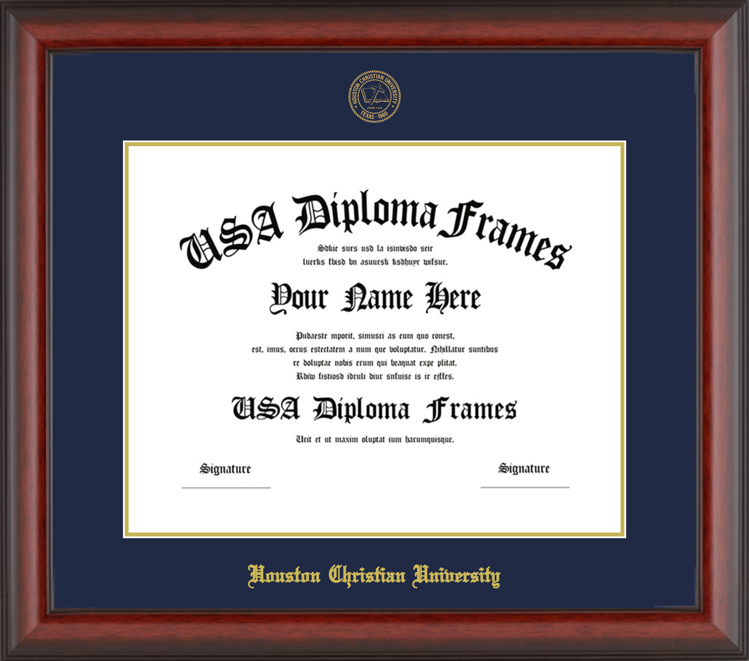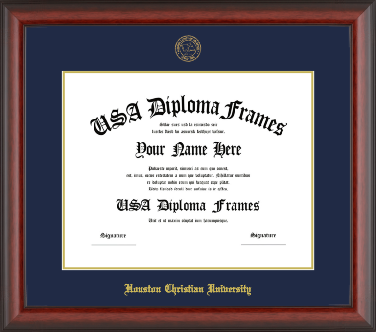 Want to explore more styles? Browse our full range of diploma frame layouts, or visit the Houston Christian University to view options available for your school. Looking for a fully personalized design? Try our custom Frame Builder and create a frame that’s uniquely yours.