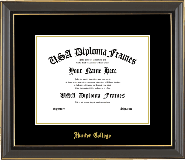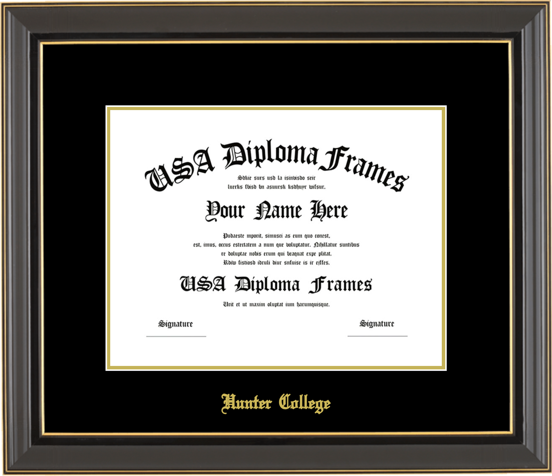 Hunter College Diploma Frame – Black Gold Trim Glossy – Black and Gold Mat