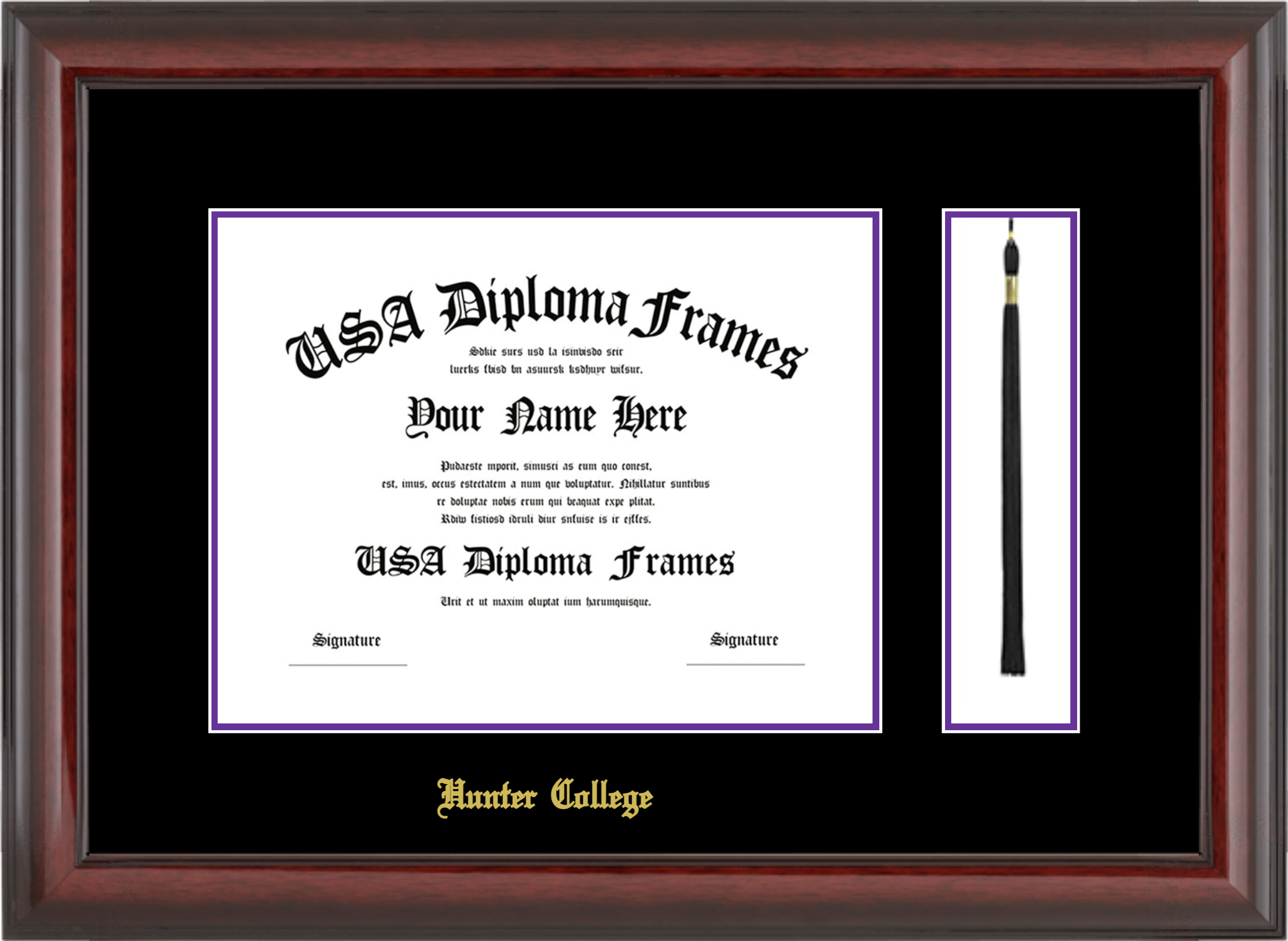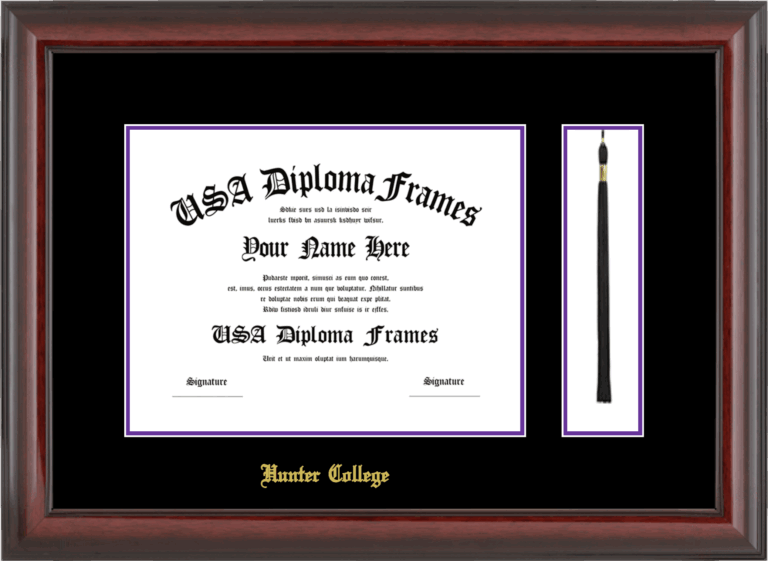 Hunter College Diploma Frame with Tassel – Cherry Mahogany Glossy – Black and Purple Mat