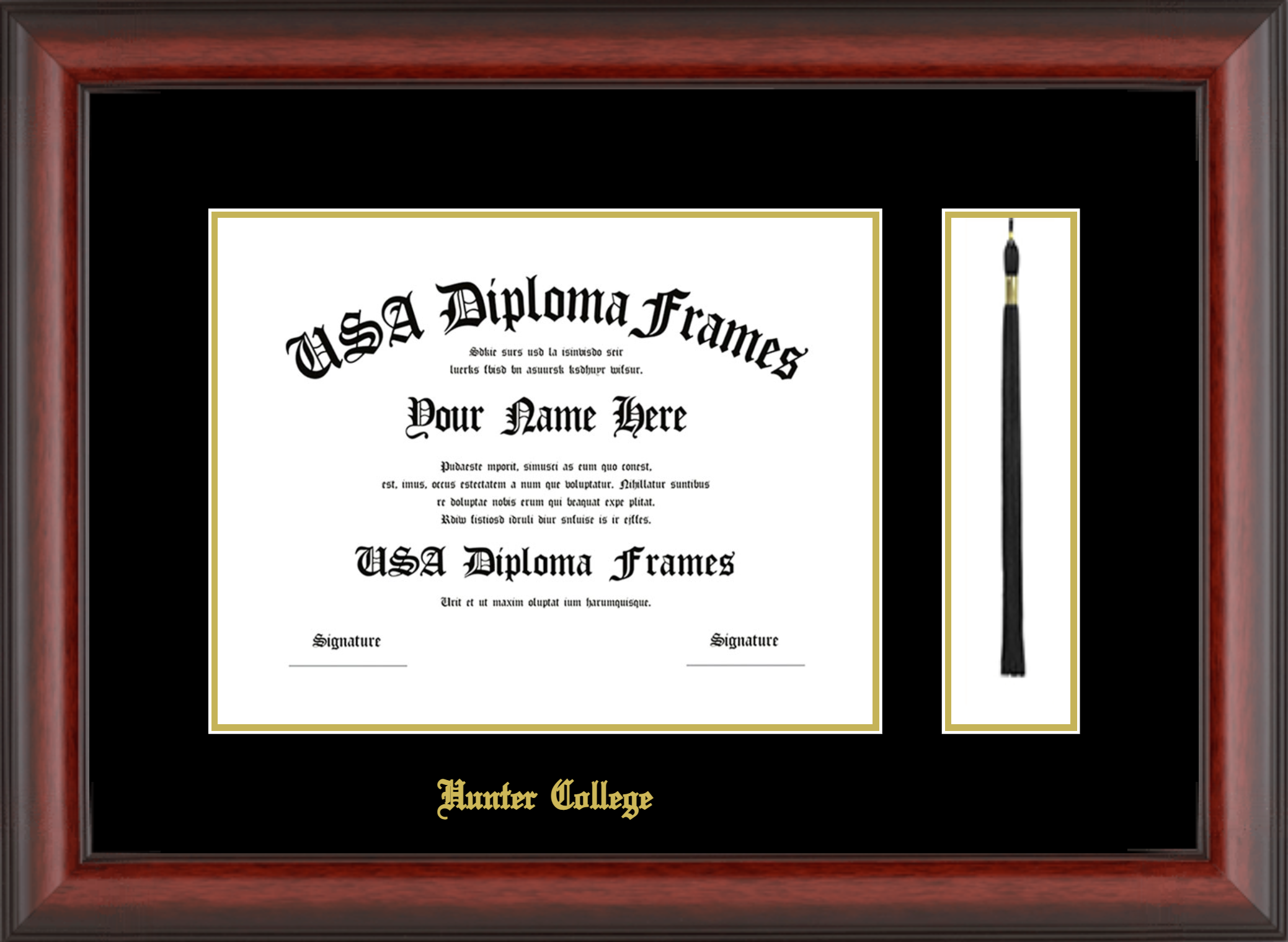 Hunter College Diploma Frame with Tassel – Cherry Mahogany Matte – Black and Gold Mat