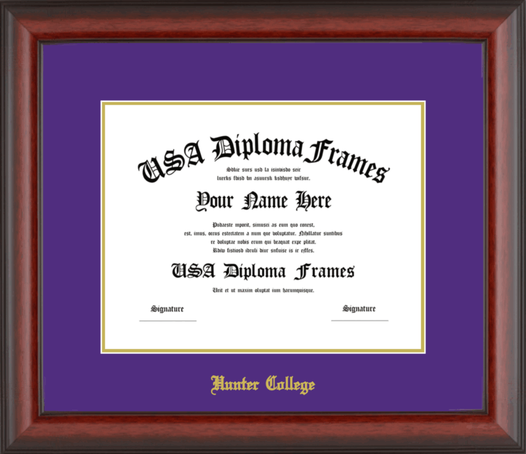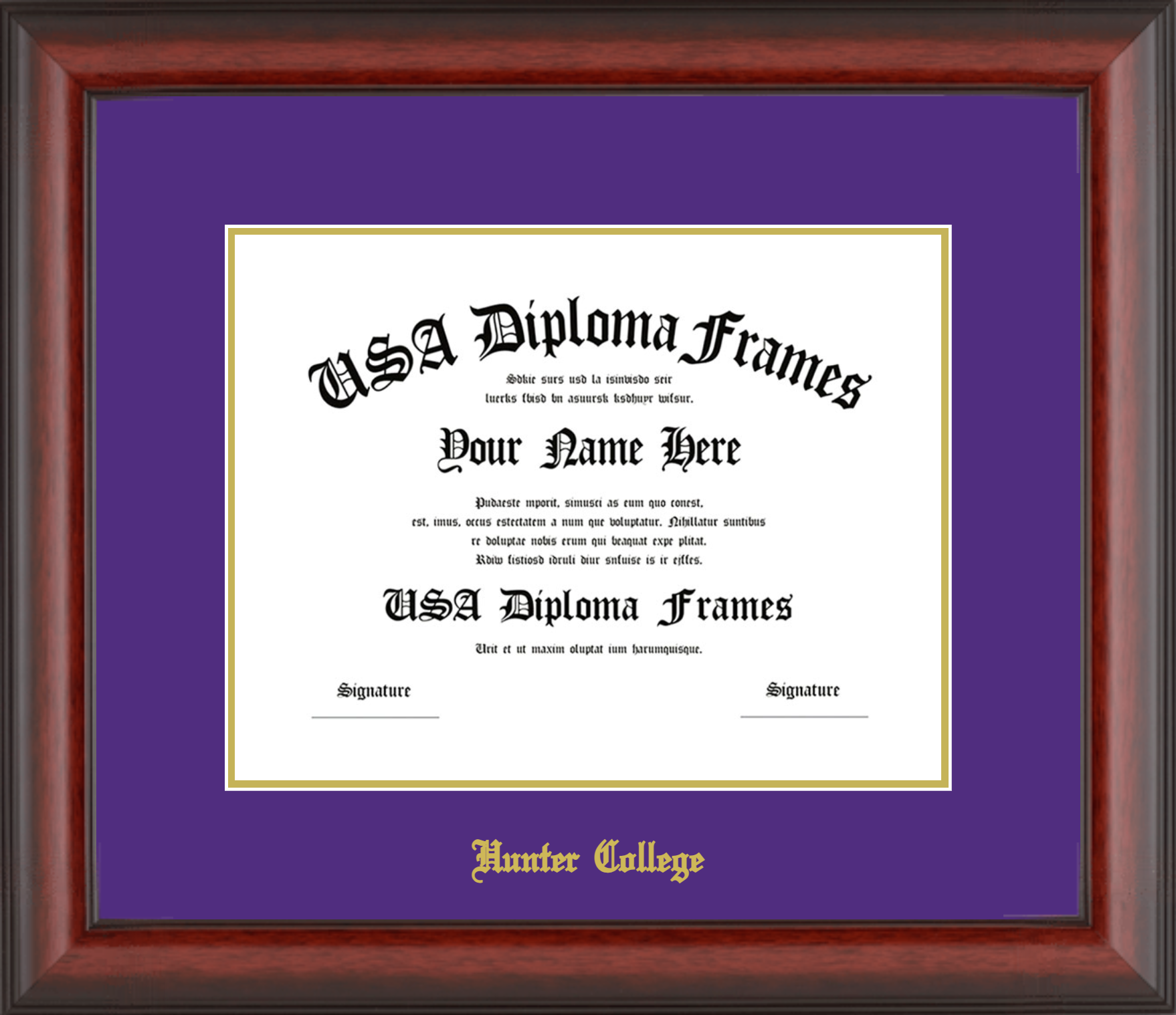 Hunter College Diploma Frame – Cherry Mahogany Matte – Purple and Gold Mat