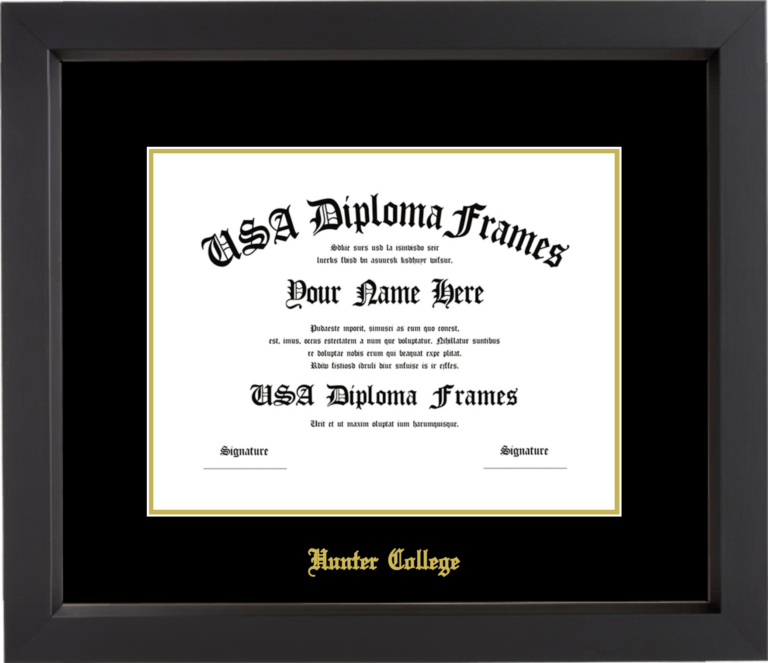 Hunter College Diploma Frame – Black Matte – Black and Gold Mat