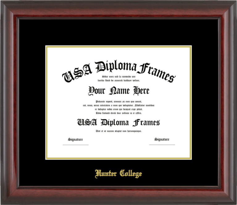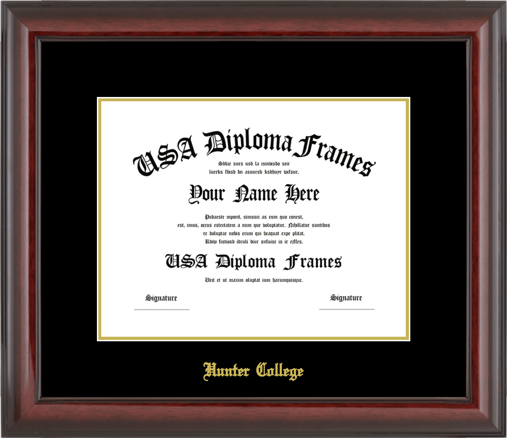 Hunter College Diploma Frame – Cherry Mahogany Glossy – Black and Gold Mat