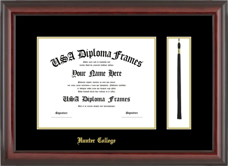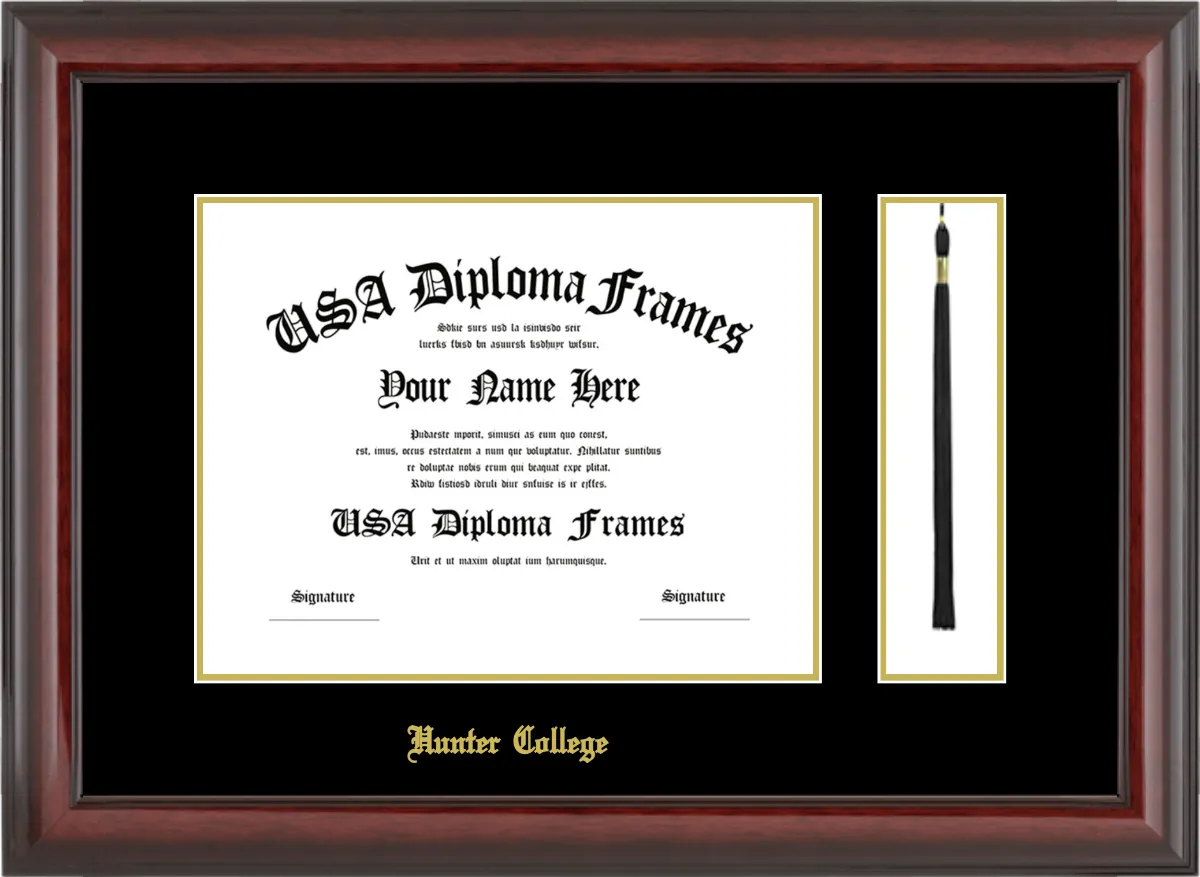 Hunter College Diploma Frame with Tassel – Cherry Mahogany Glossy – Black and Gold Mat