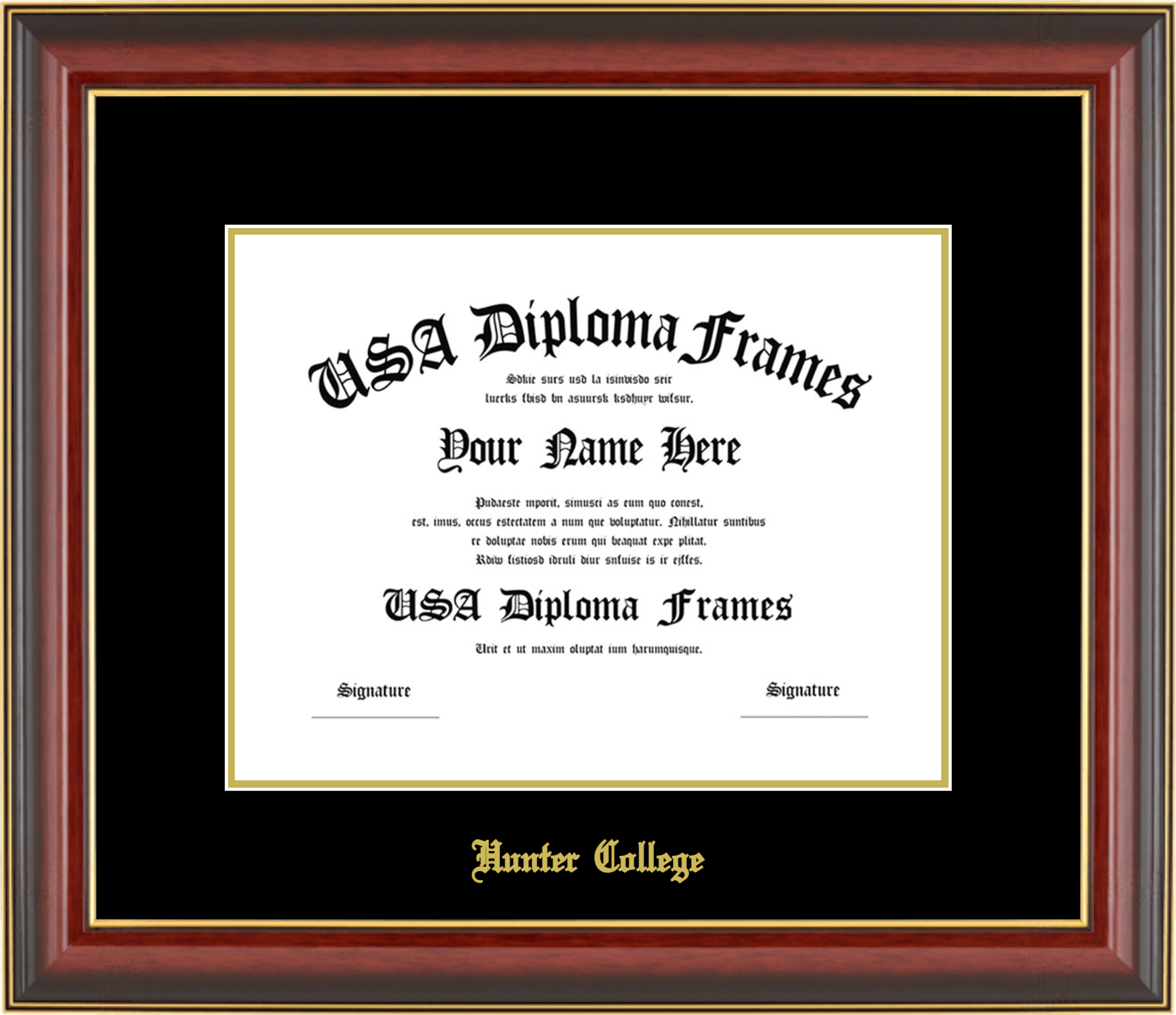 Hunter College Diploma Frame – Cherry Mahogany Gold Trim Glossy – Black and Gold Mat